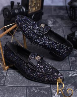 Mocasini / Loafers negri, lacuiti cu ciucuri – P1727