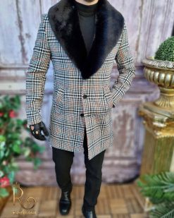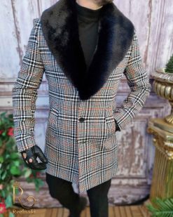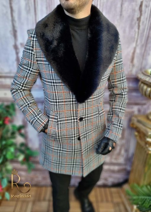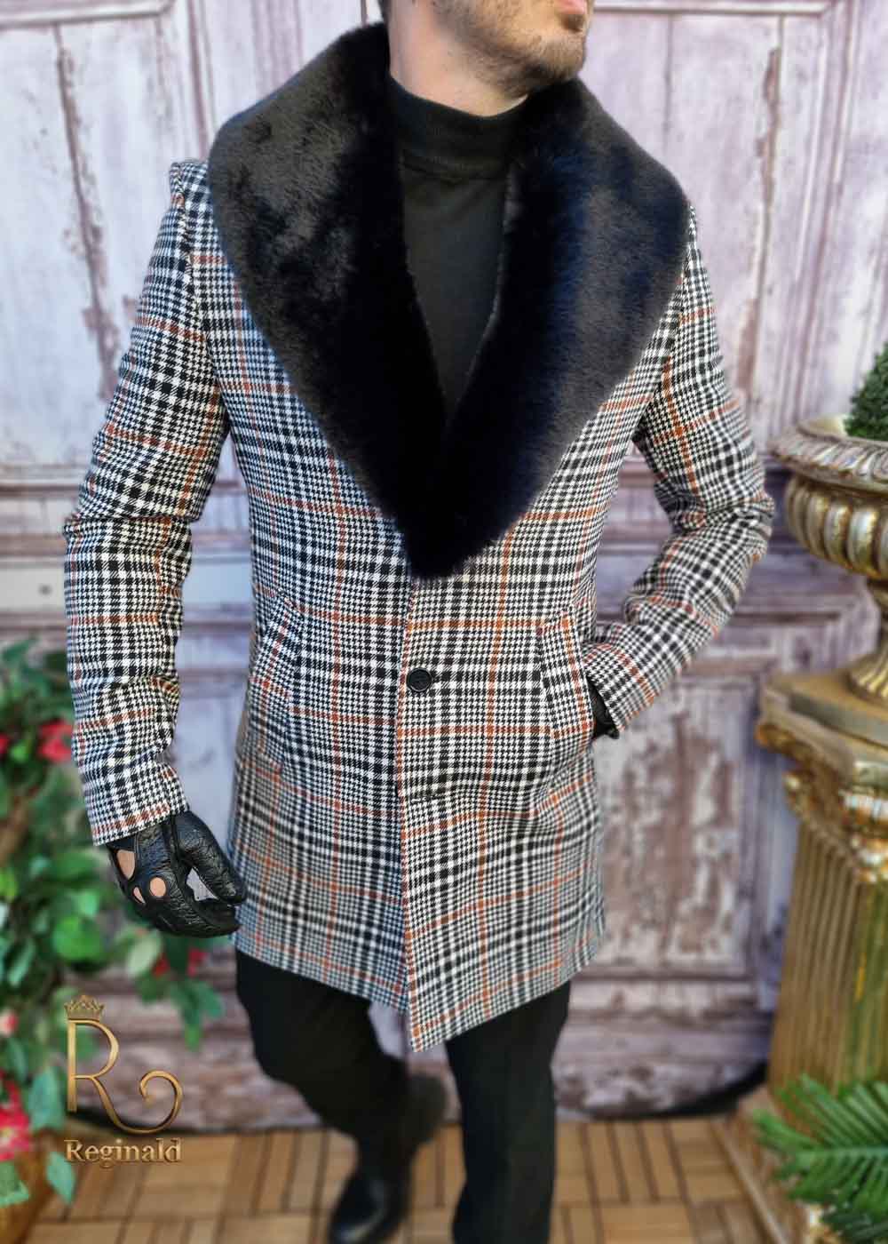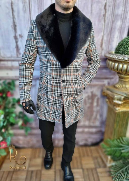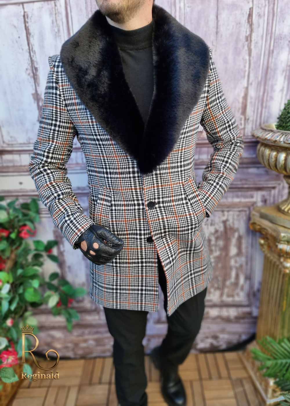 Palton de barbati, lung, cu blana la guler, croiala slim-fit – PT397