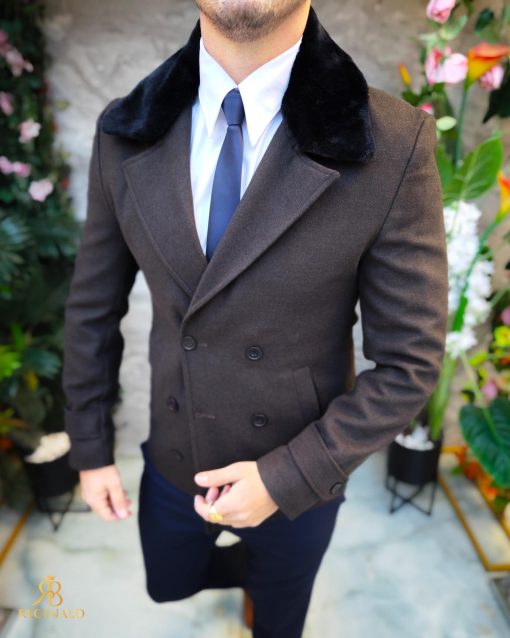 Palton de barbati, cu blana la guler,detasabila, croiala slim-fit