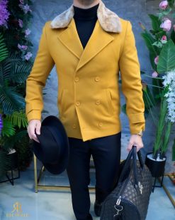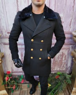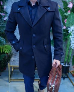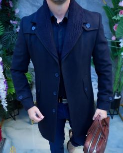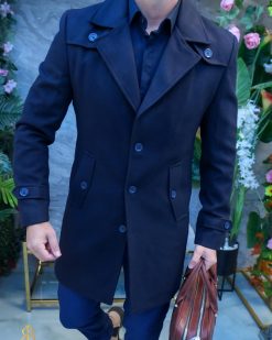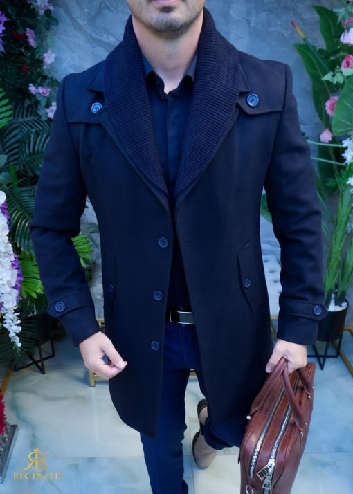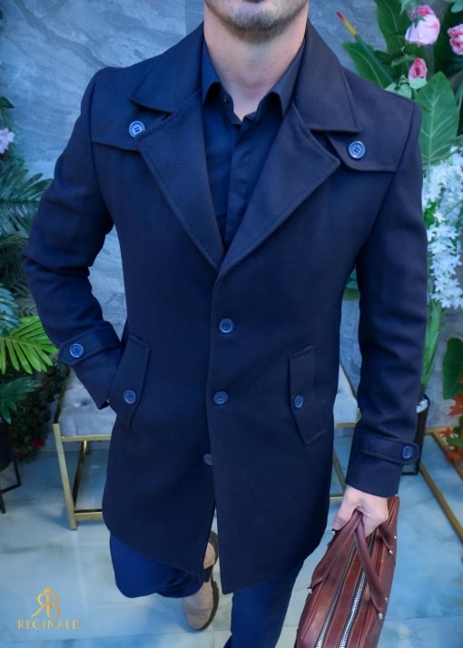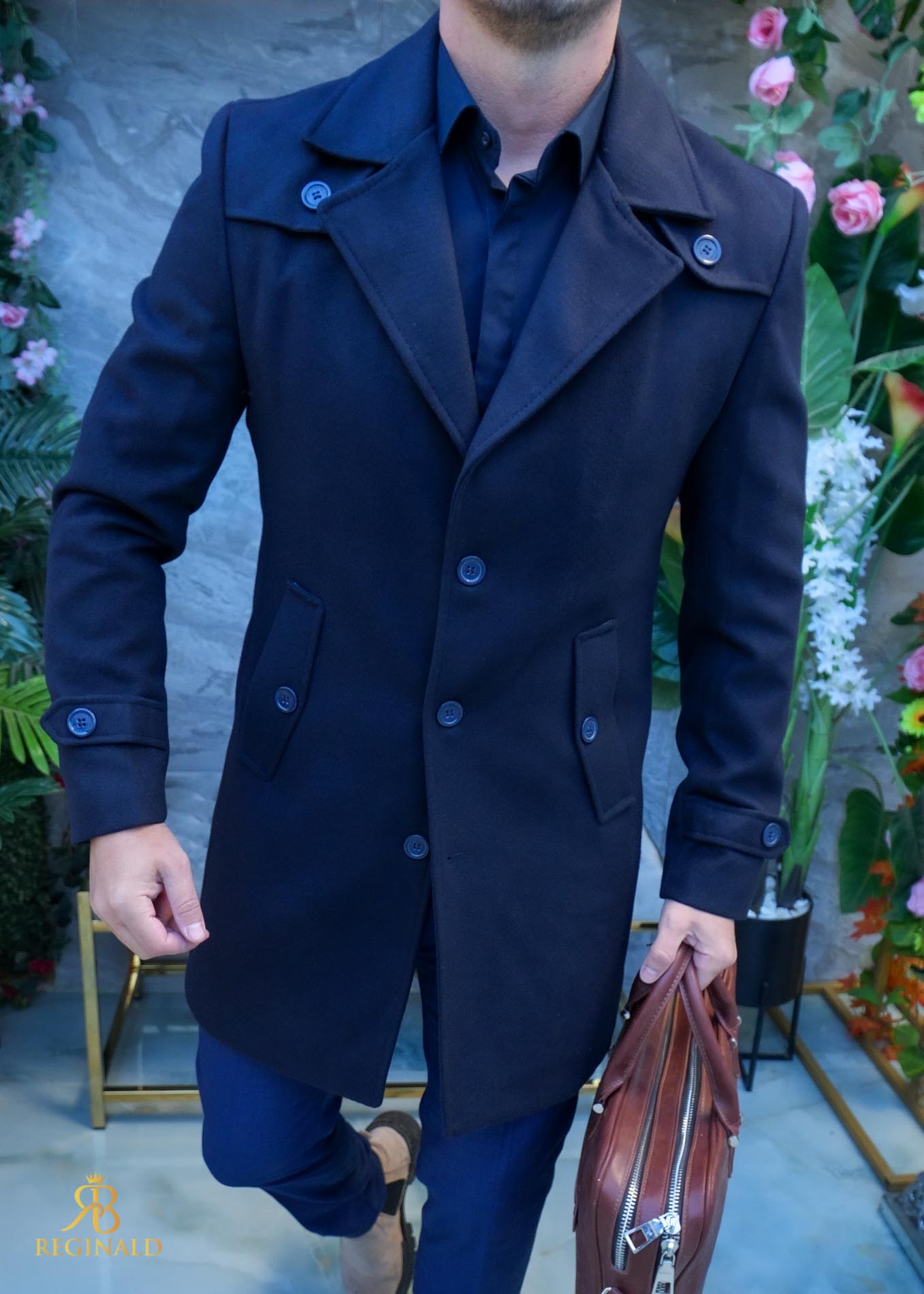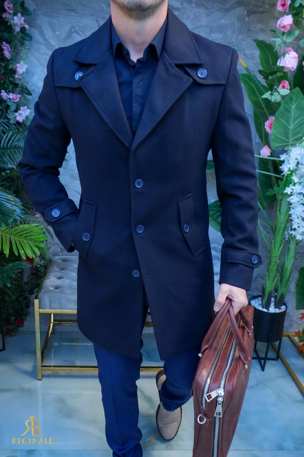 Palton de bărbați, Slim Fit, Bleumarin, cu nasturi- PT492