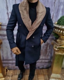 Palton de barbati, Slim-Fit, bleumarin, Guler de blana – PT427