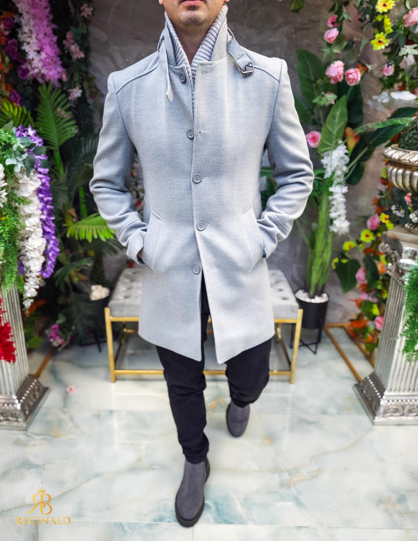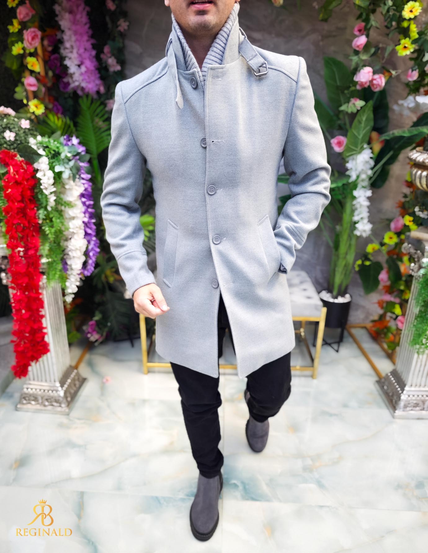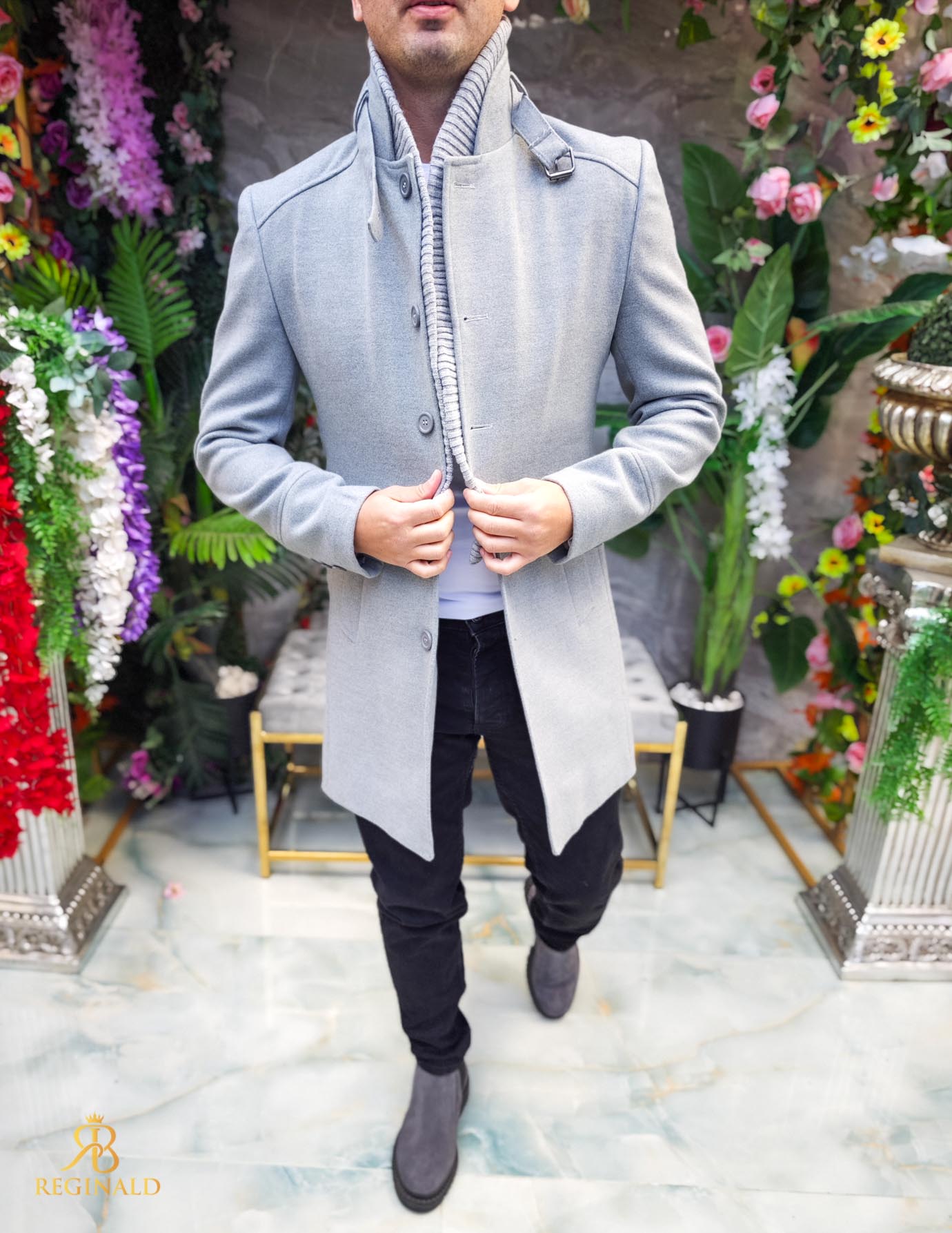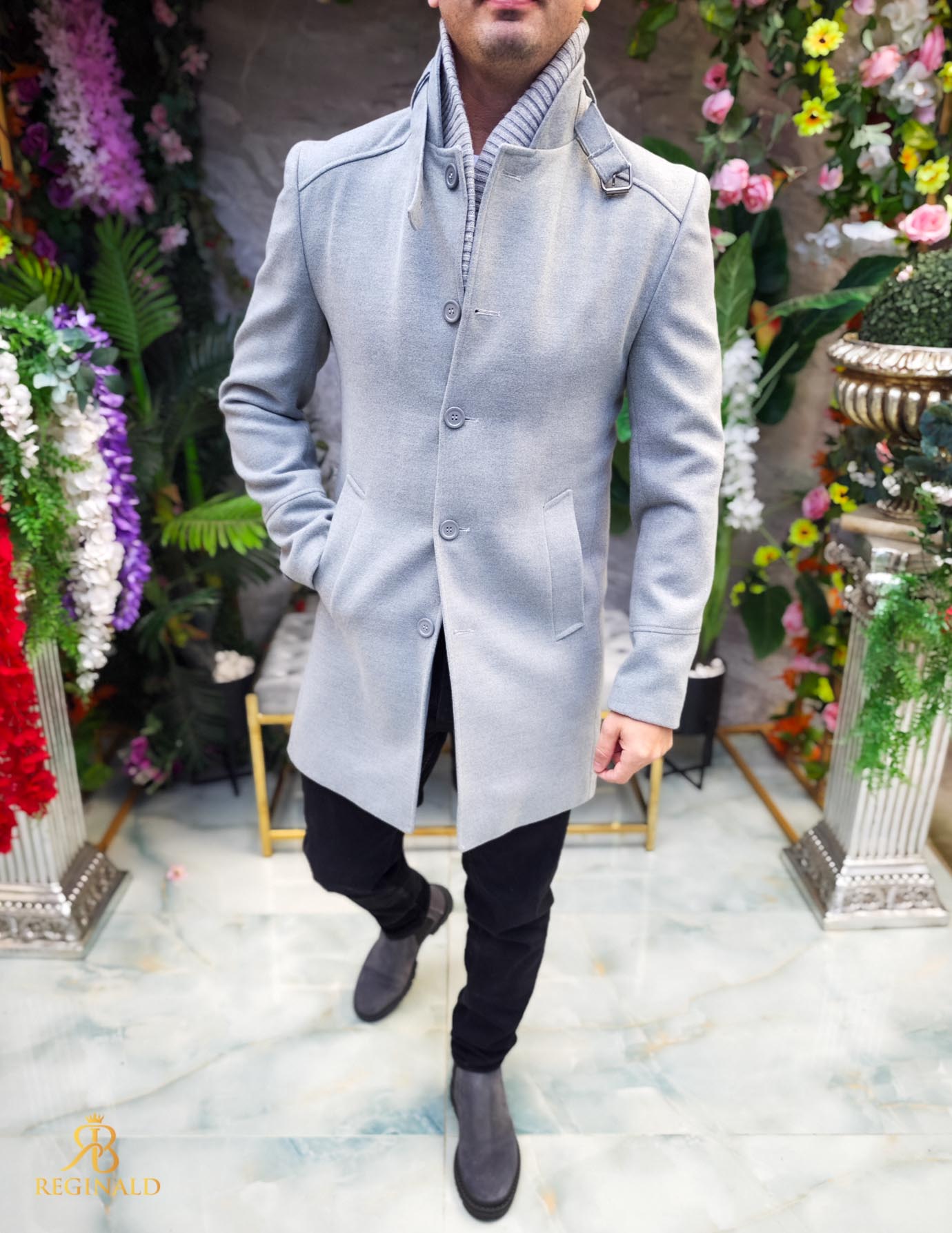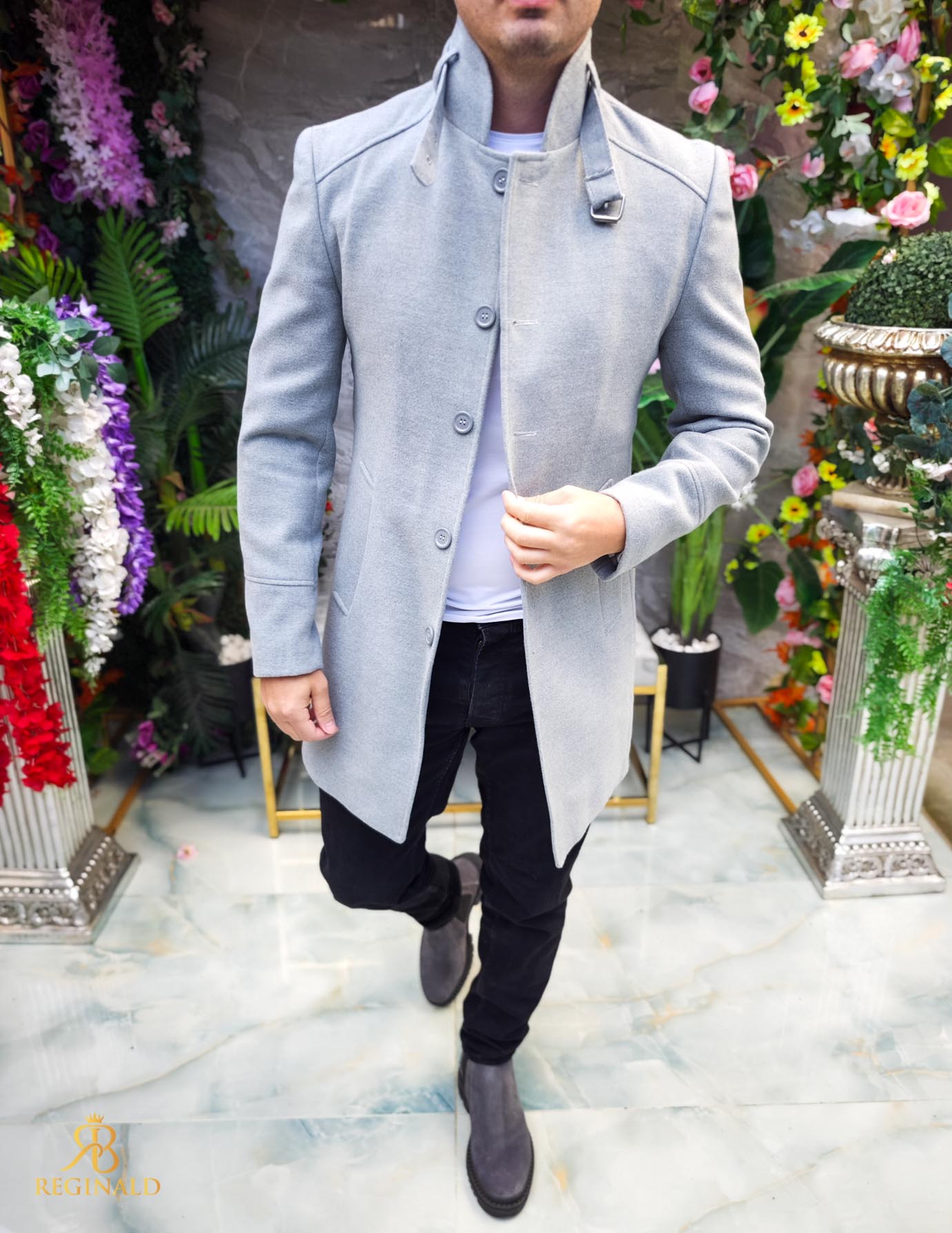 Palton de bărbați, lung, croiala slim-fit