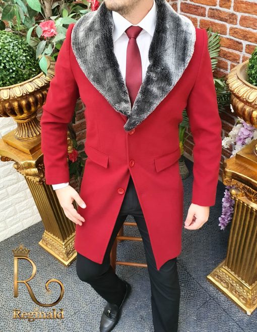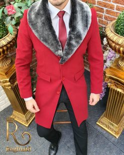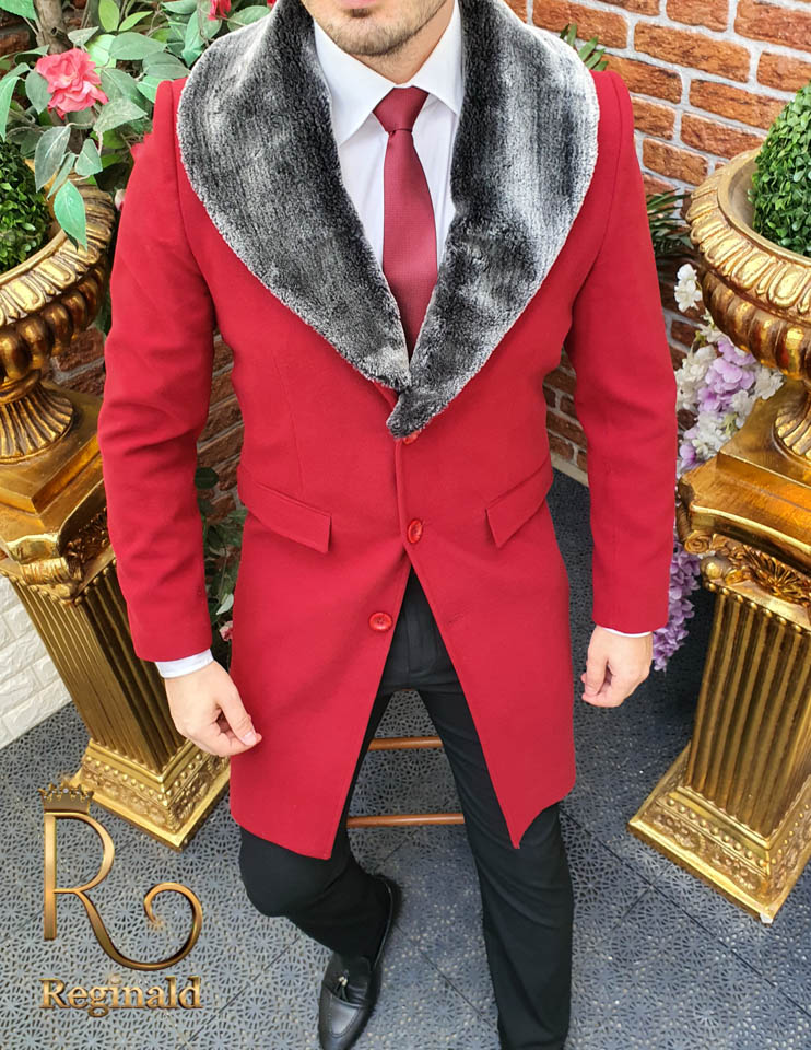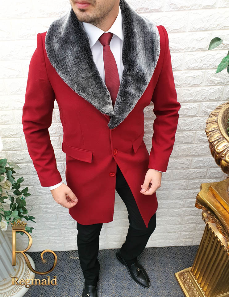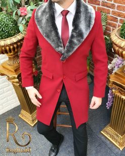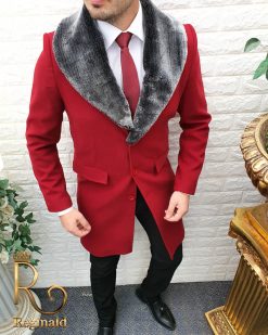 Palton barbatesc cu blana detasabila neagra model Slim Fit Colectia toamna-iarna