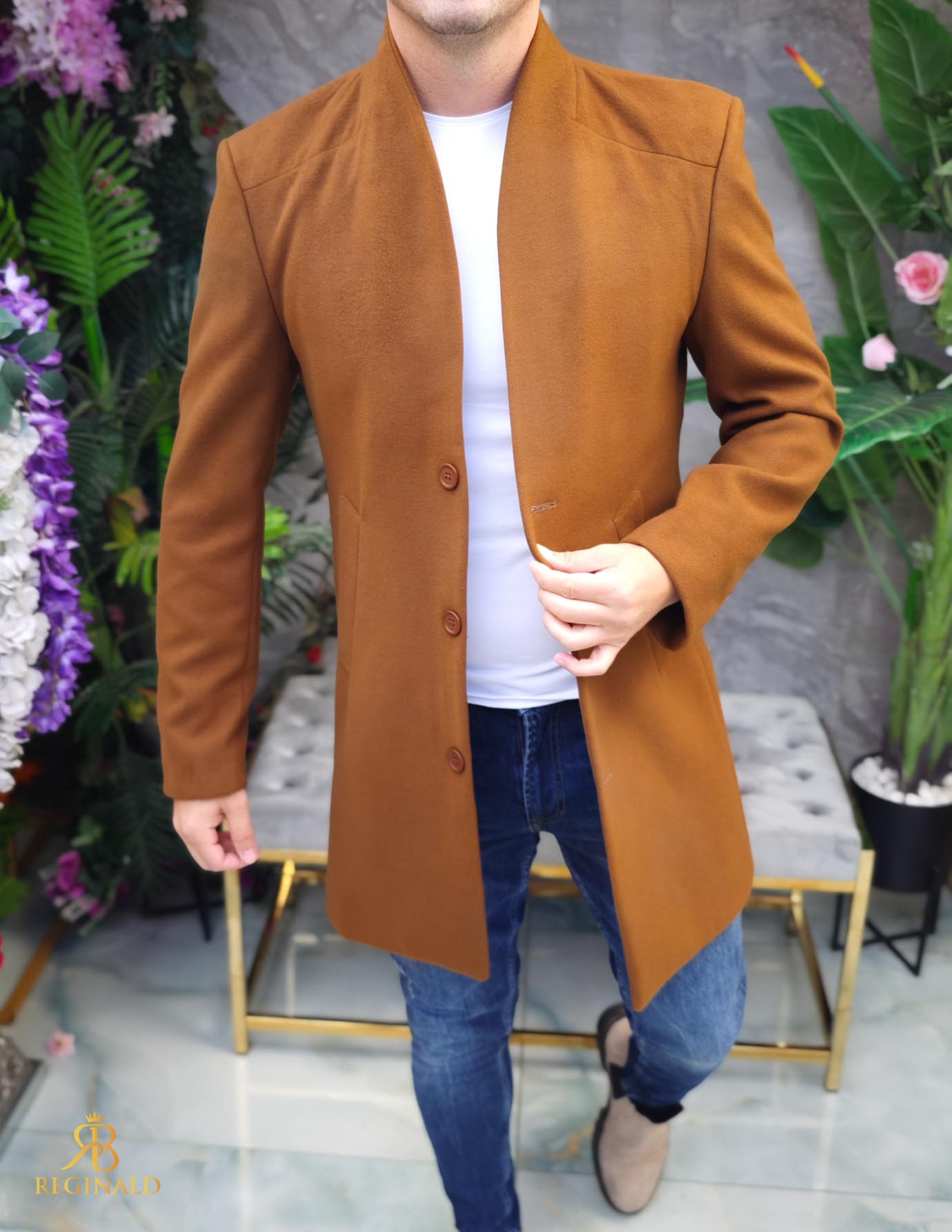 Palton de bărbați, lung, croiala slim-fit