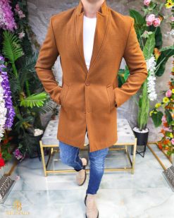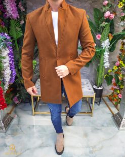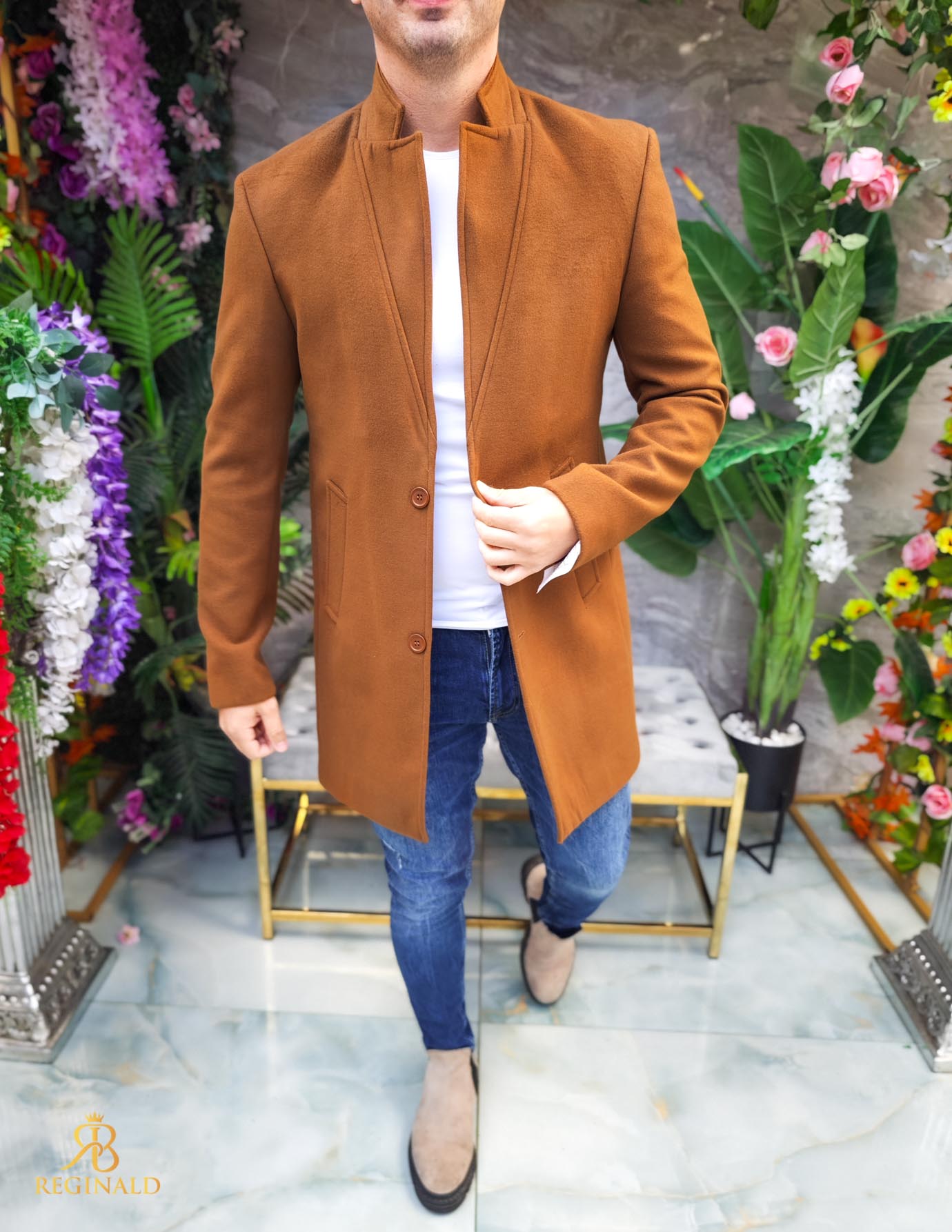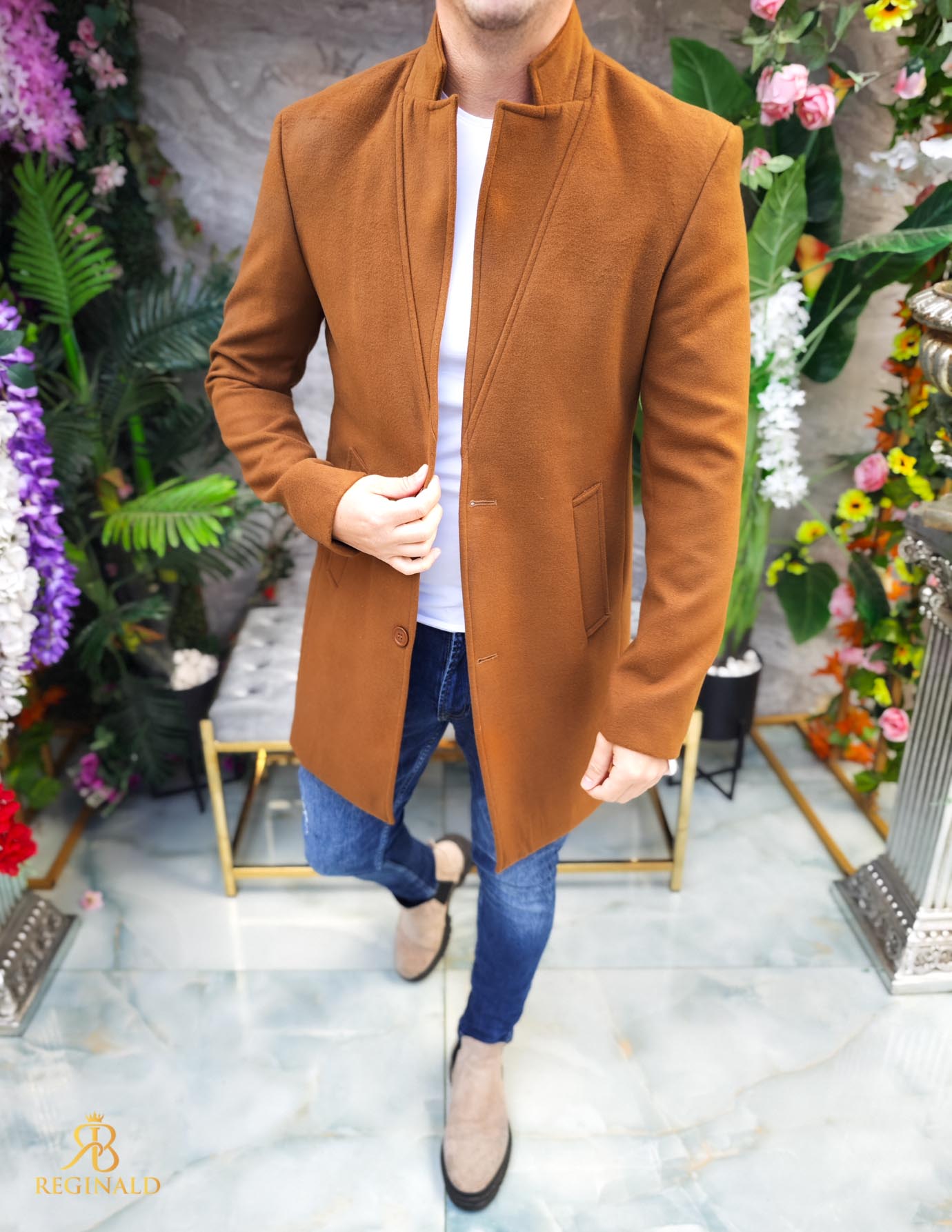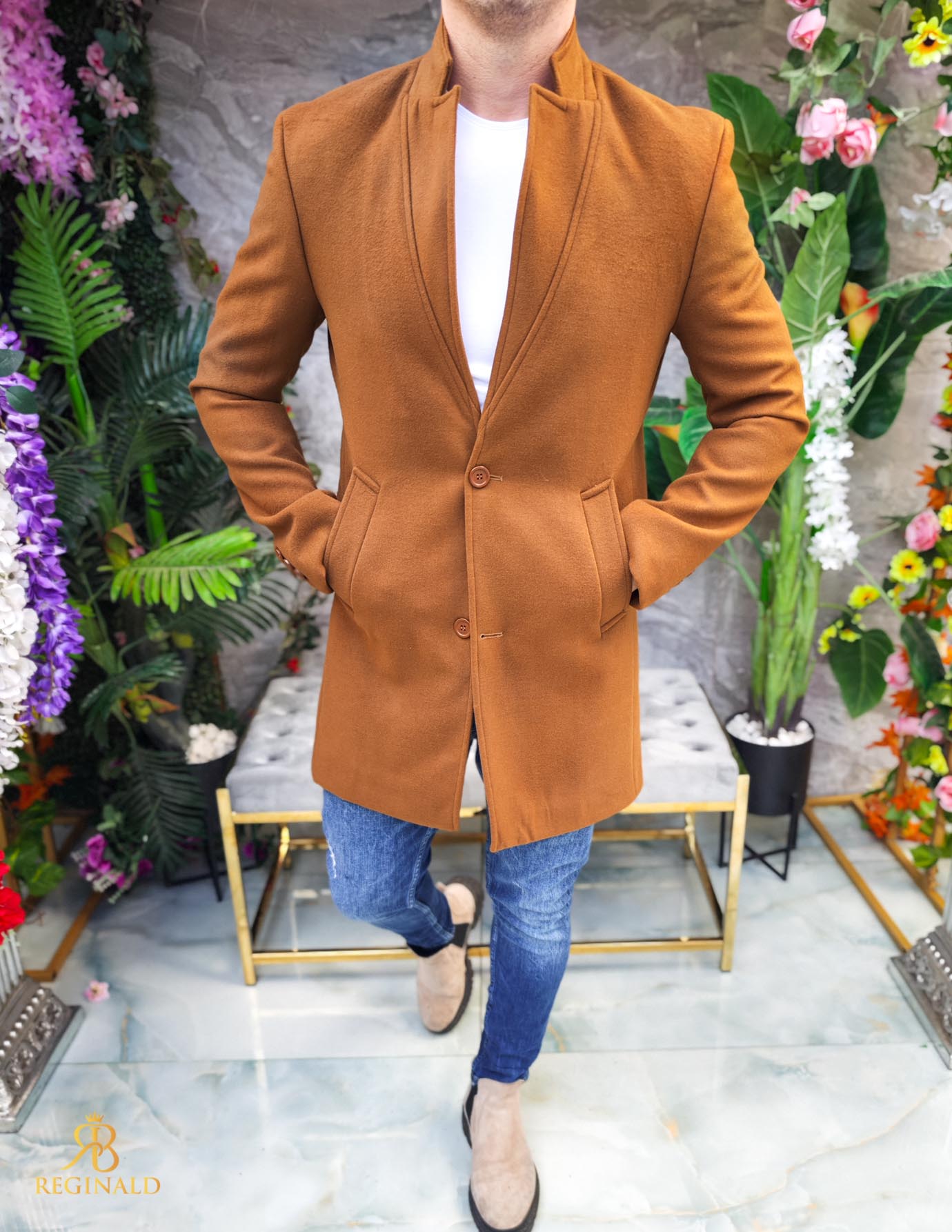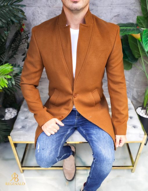 Palton de bărbați, Slim Fit, Maro cu nasturi – PT457