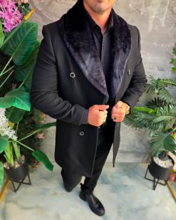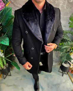 Palton bărbătesc elegant cu rever din blană – Slim Fit