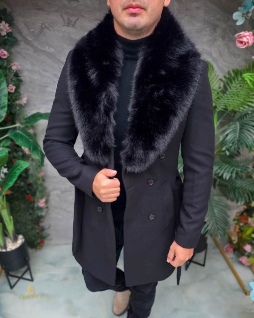 Palton bărbătesc elegant cu rever din blană – Slim Fit