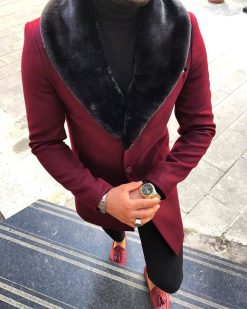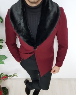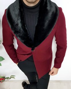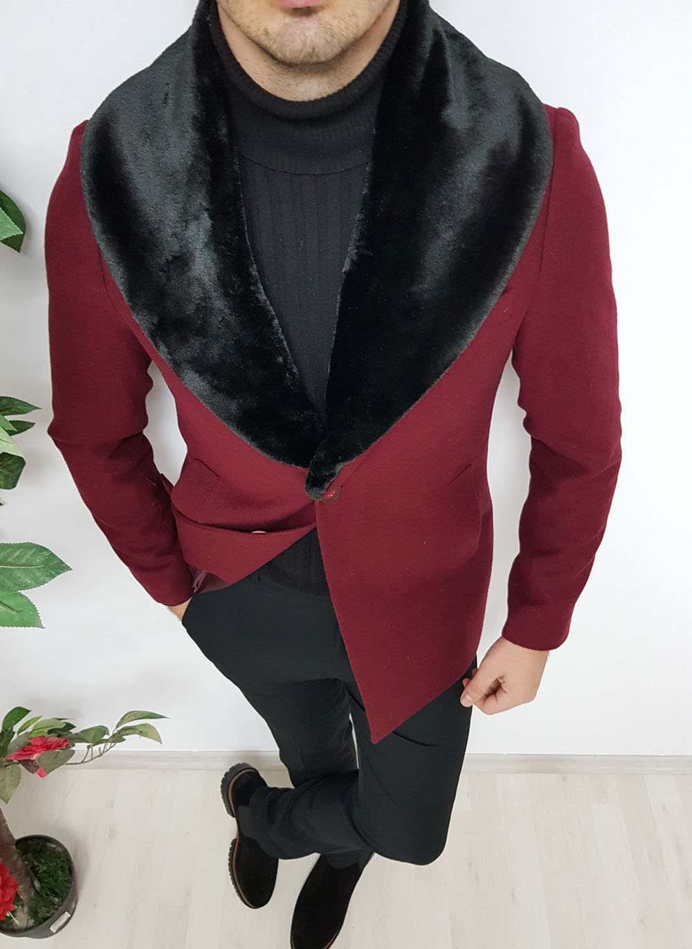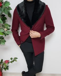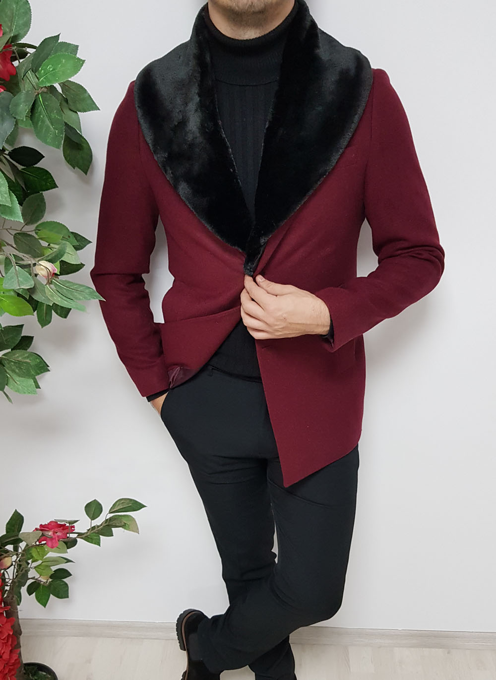 Palton de barbati, Slim Fit, scurt, bordeaux cu blana neagra detasabila – PT241