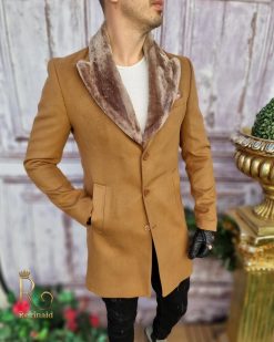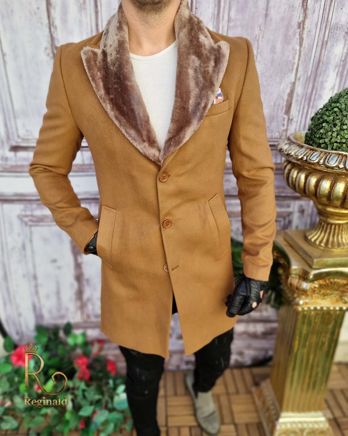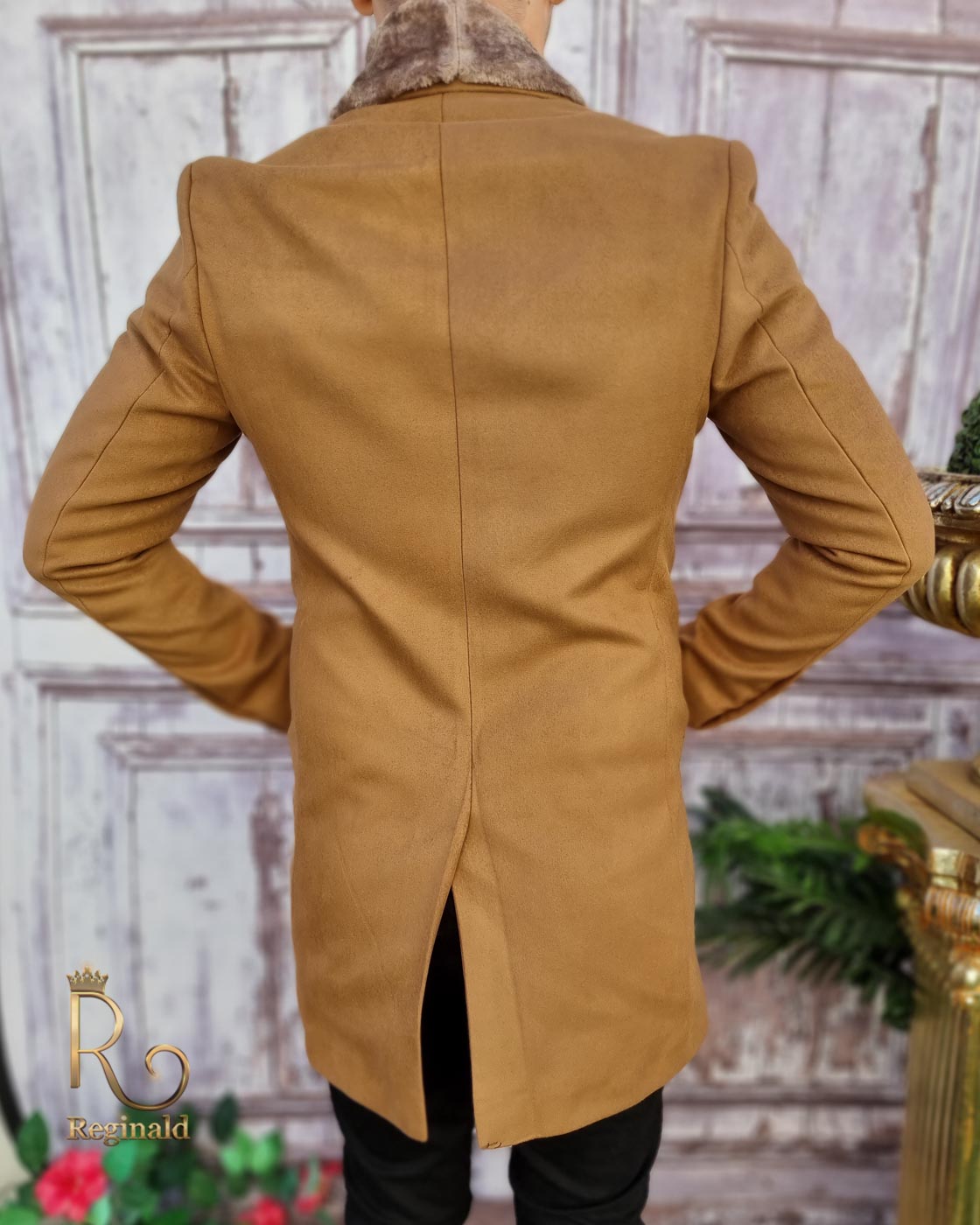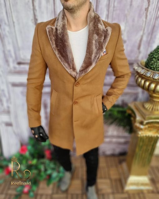 Palton barbatesc slim-fit, lung cu blana crem, detasabila