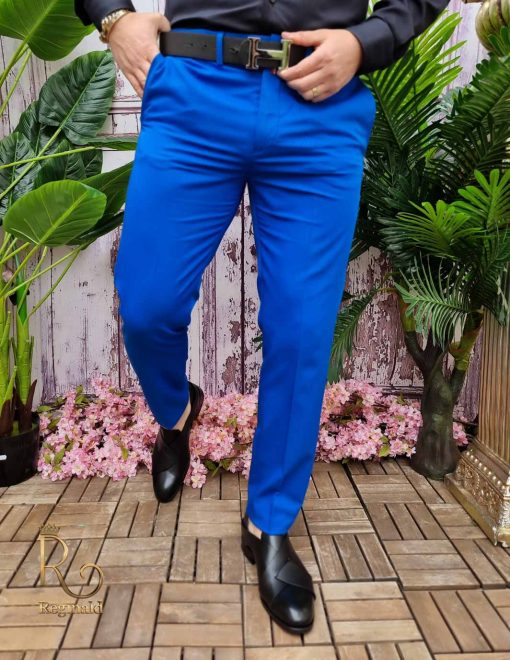 Pantaloni eleganti de barbati cu croiala slim-fit, bretea, elastica in talie, prindere nasture si fermoar, 2 buzunare in fata, 2 buzunare in spate.
