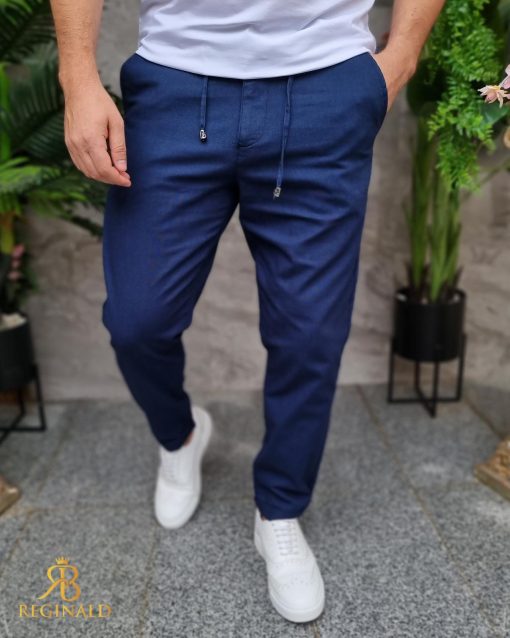 Pantaloni casual bleumarin, cu snur ,croiala conica, tiv intors- PN770