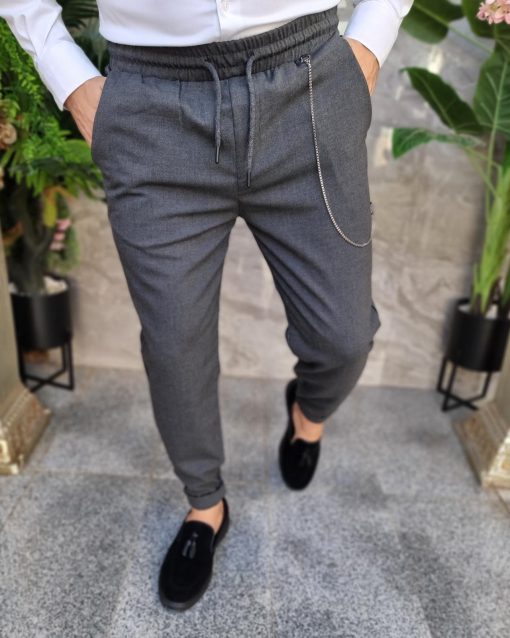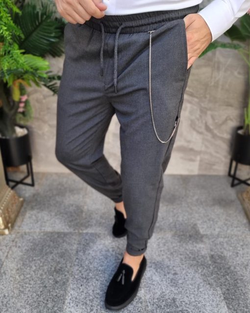 Pantaloni eleganti de barbati cu croiala slim-fit, prindere nasture si fermoar, 2 buzunare in fata, 2 buzunare in spate.