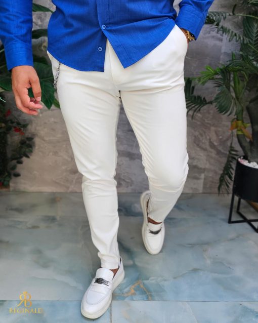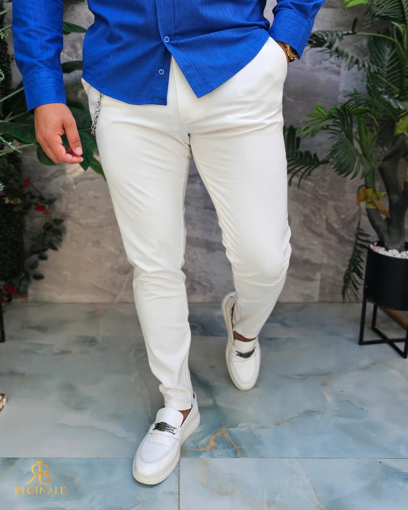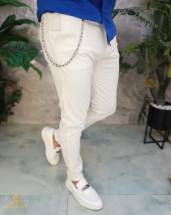 Pantaloni de barbati casual slim-fit, conici cu lant si fermoar la glezne