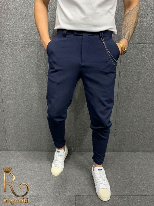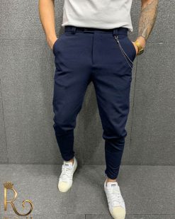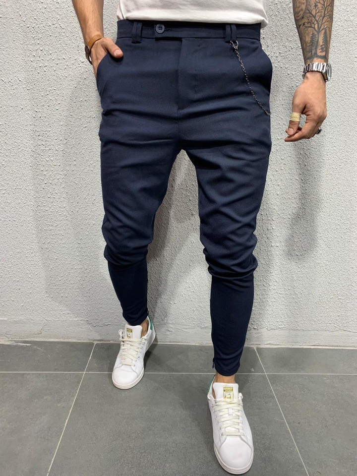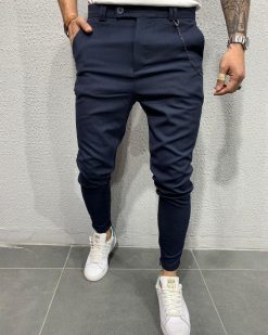 Pantaloni de barbati casual slim-fit cu semi-tur, conici si fermoar la gambe