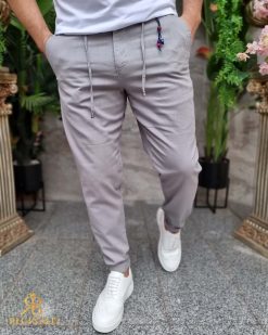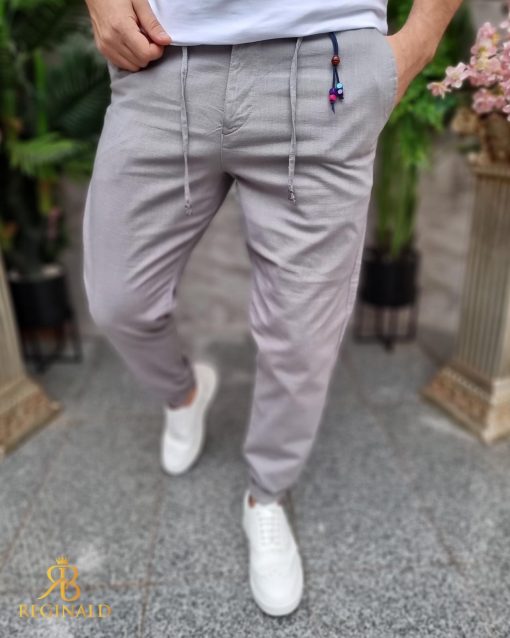 Pantaloni casual GRI, cu snur ,croiala conica, tiv intors- PN771