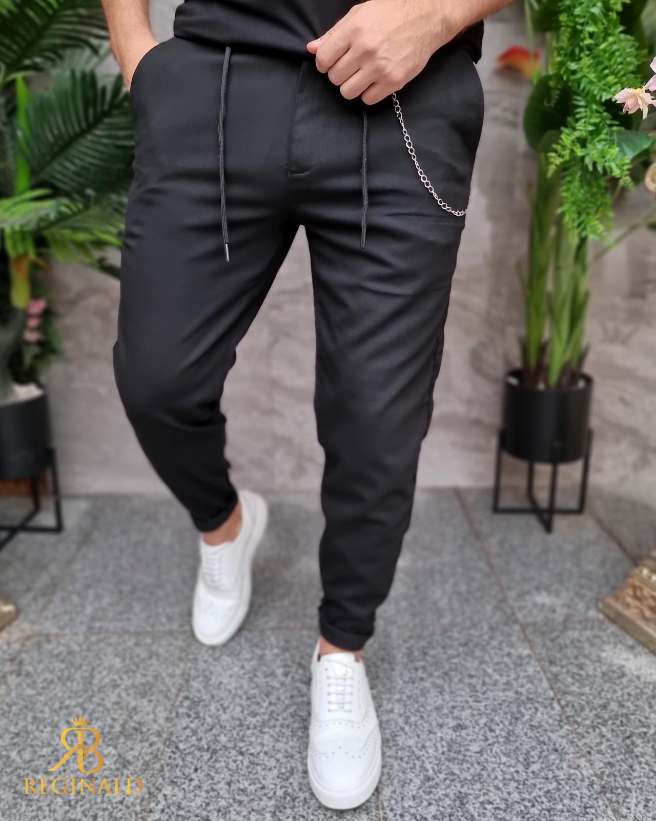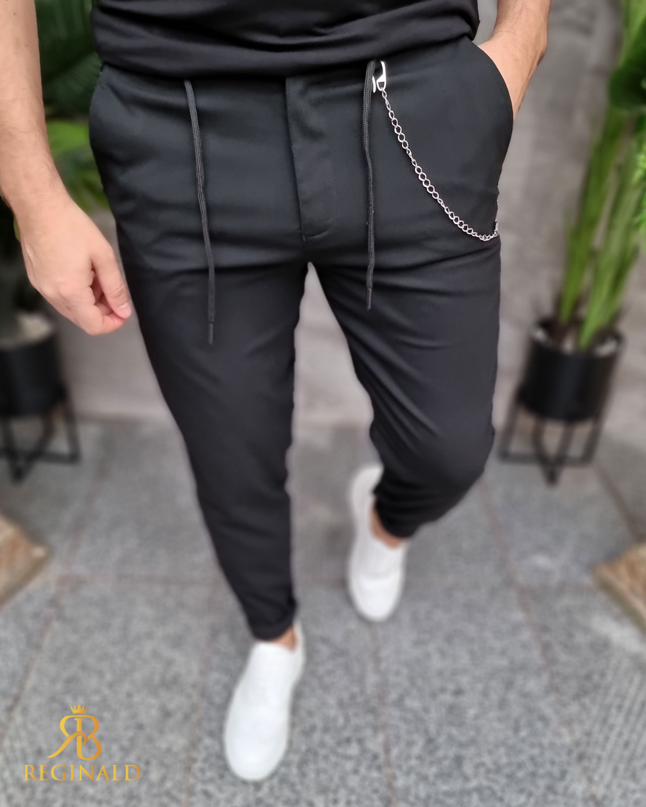Pantaloni eleganti de barbati cu croiala slim-fit, prindere nasture si fermoar, 2 buzunare in fata, 2 buzunare in spate.
