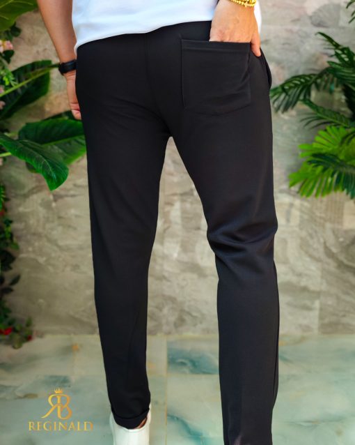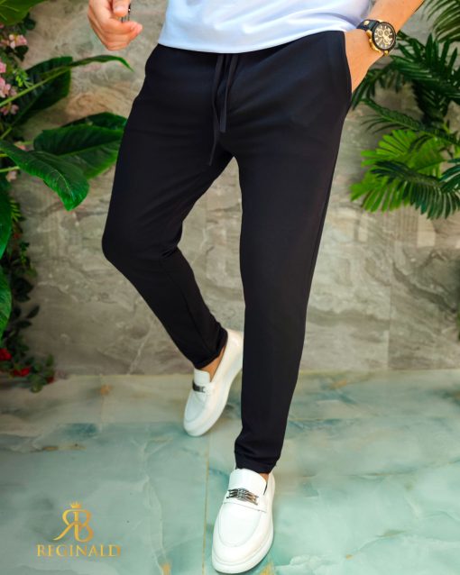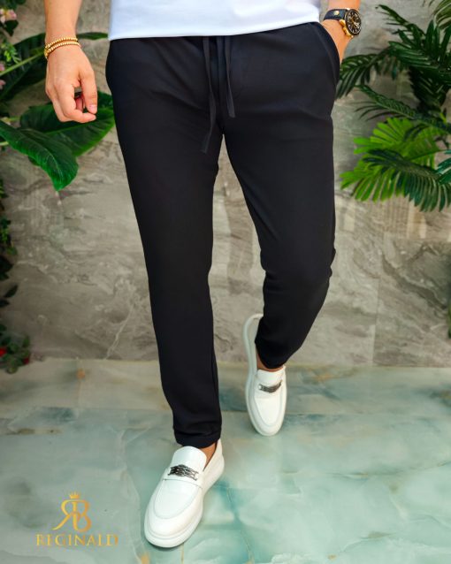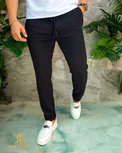 Pantaloni casual, Negru cu snur, Slim-Fit, croiala conica– PN816