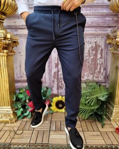 Pantaloni casual Slim-Fit, cu snur si tiv intors