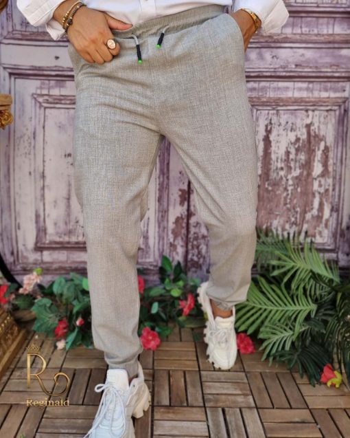 Pantaloni casual Slim-Fit, Gri, cu șnur – PNT211