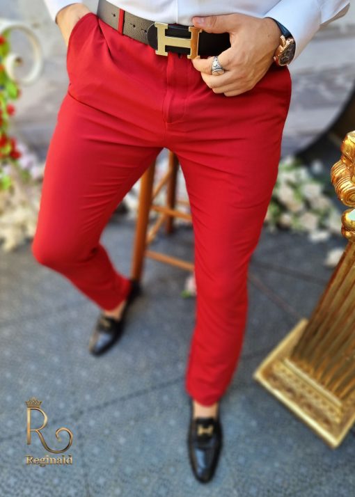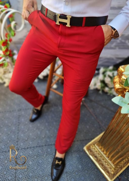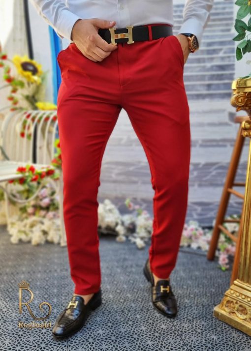 Pantaloni de barbati bordeaux ,croiala slim-fit, conici si elastici