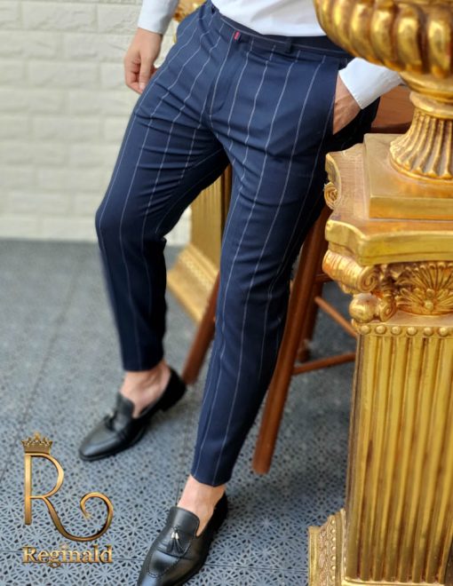 Pantaloni eleganti, de barbati, bleumarin in dungi – PN450