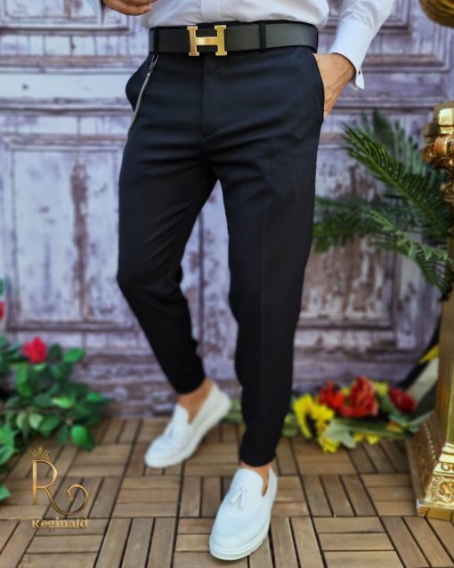 Pantaloni de barbati, Negri, Casual Slim Fit, Conici cu lanț – PNT205