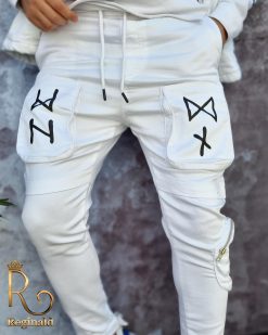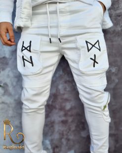 Pantaloni de barbati slim-fit bleu, cu tur lasat si fermoar lateral, conici – PNT223