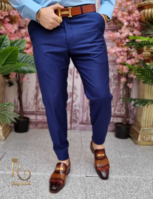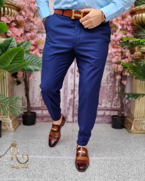 Pantaloni eleganti de barbati cu croiala slim-fit, prindere nasture si fermoar, 2 buzunare in fata, 2 buzunare in spate.