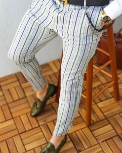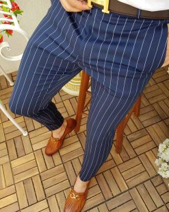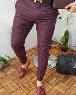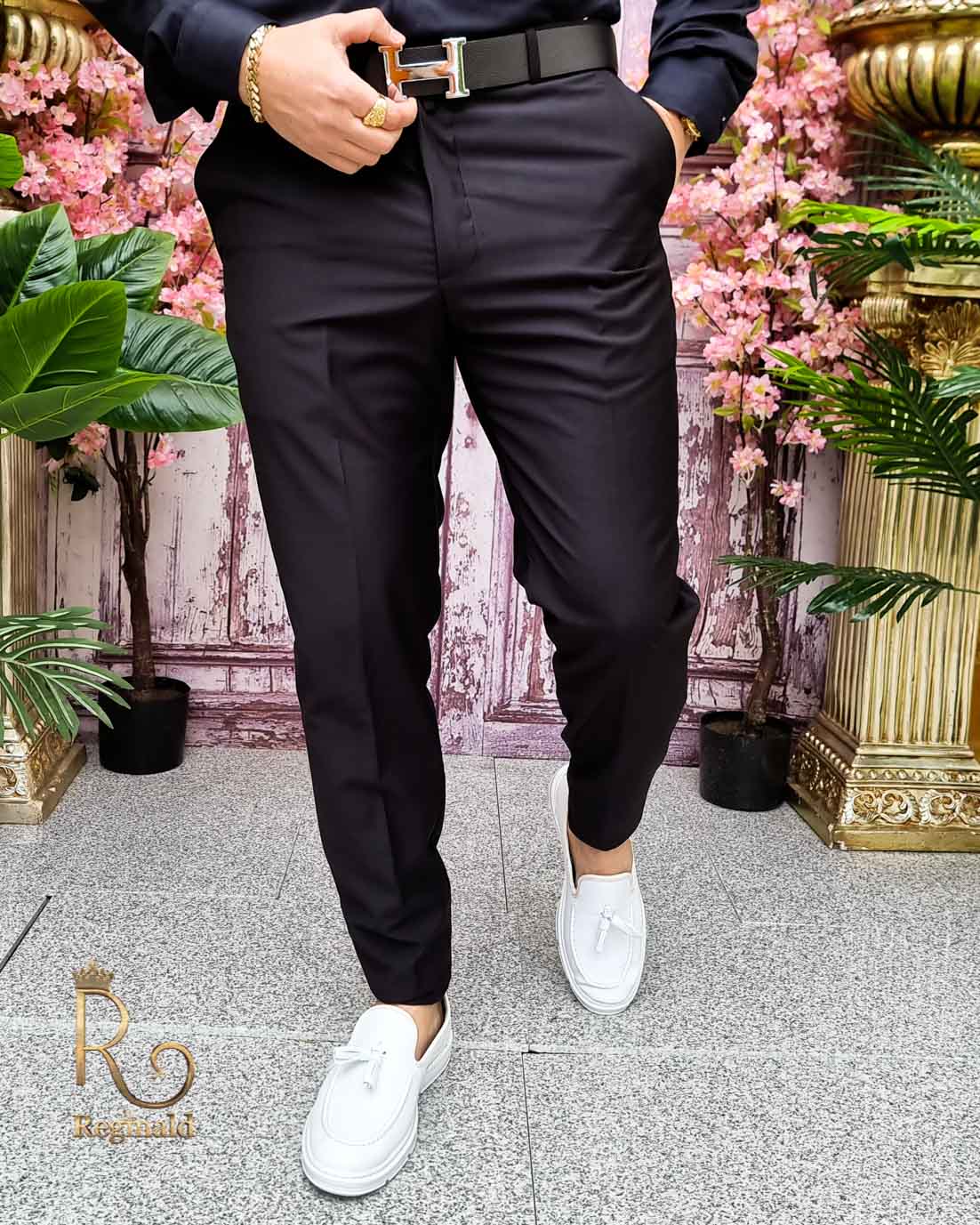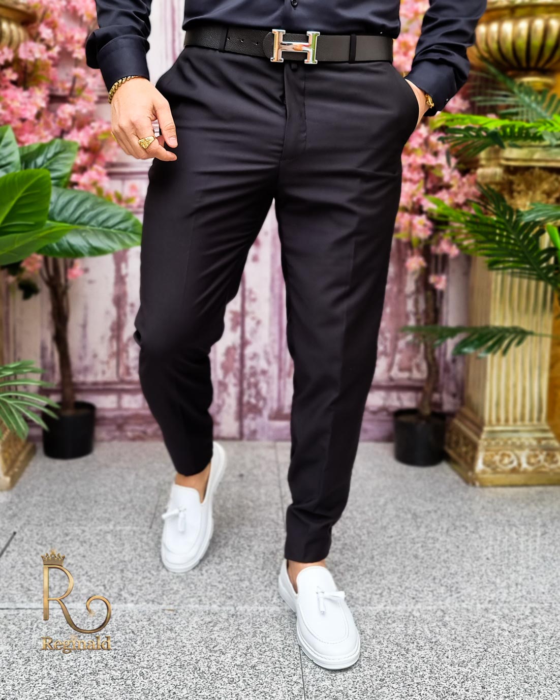 Pantaloni eleganti de barbati cu croiala slim-fit, prindere nasture si fermoar, 2 buzunare in fata, 2 buzunare in spate.