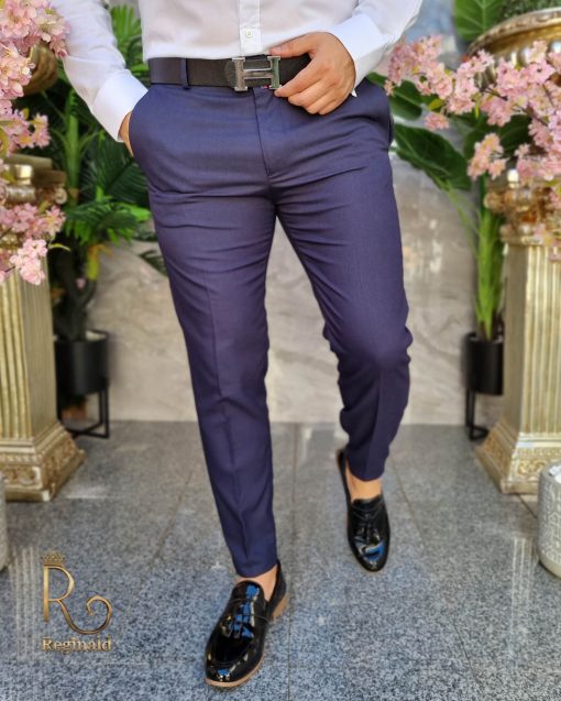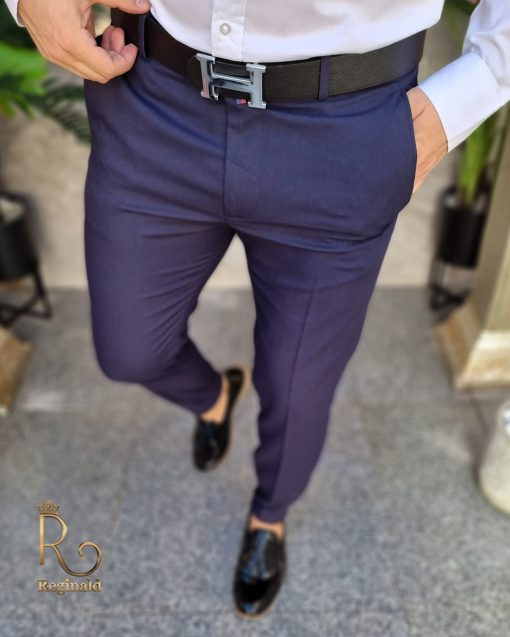 Pantaloni eleganti de barbati cu croiala slim-fit, , prindere nasture si fermoar, 2 buzunare in fata, 2 buzunare in spate.