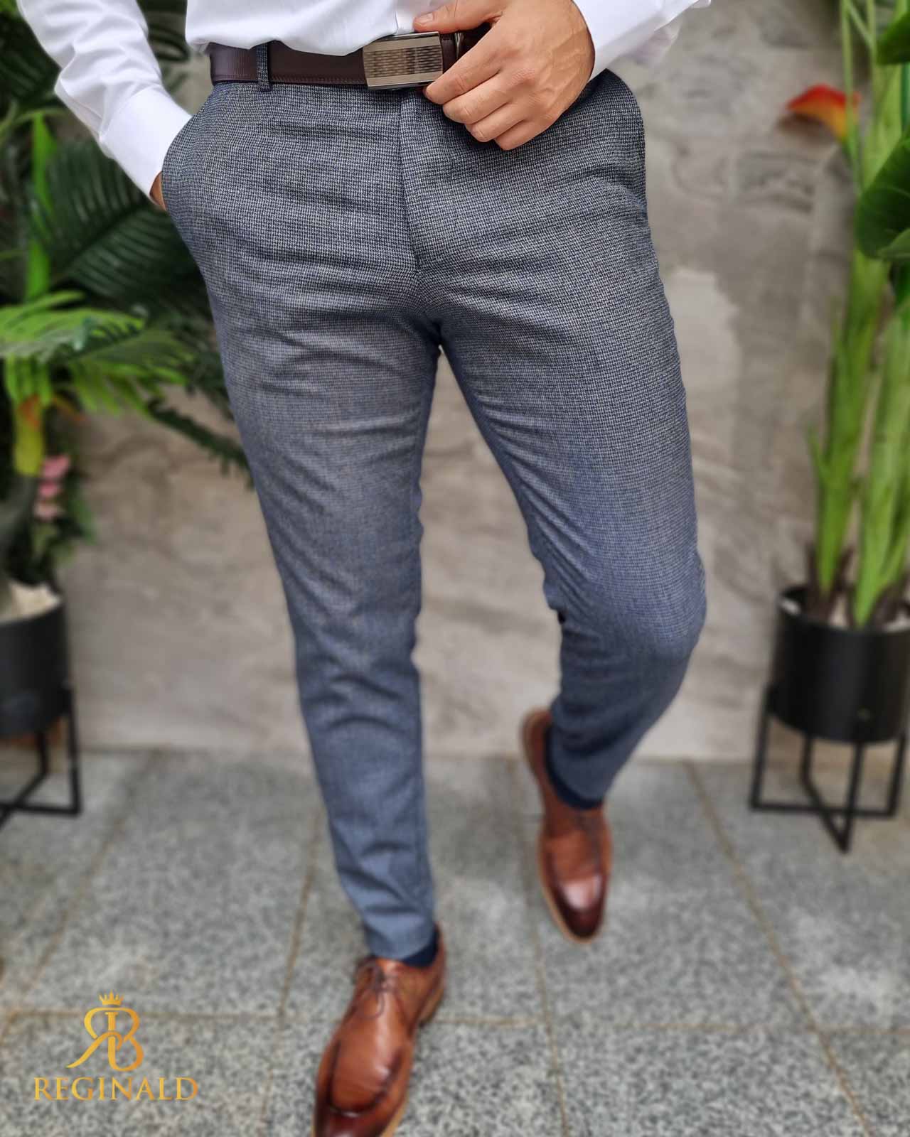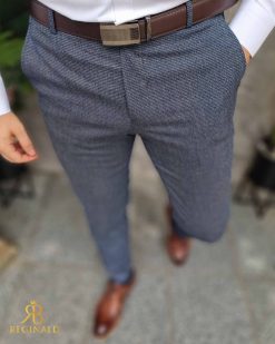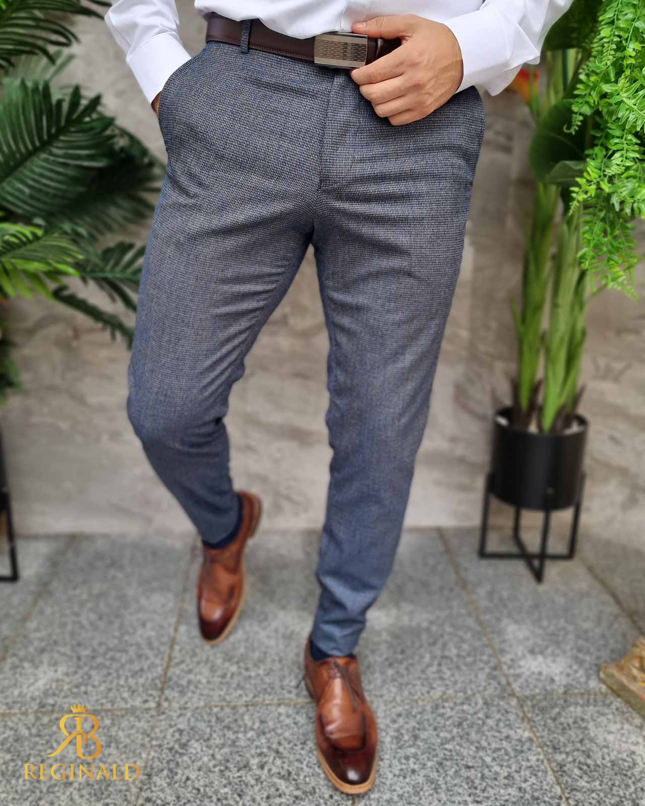 Pantaloni eleganti de barbati cu croiala slim-fit, prindere nasture si fermoar, 2 buzunare in fata, 2 buzunare in spate.