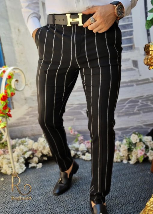 Pantaloni eleganti, de barbati, negru in dungi – PN439