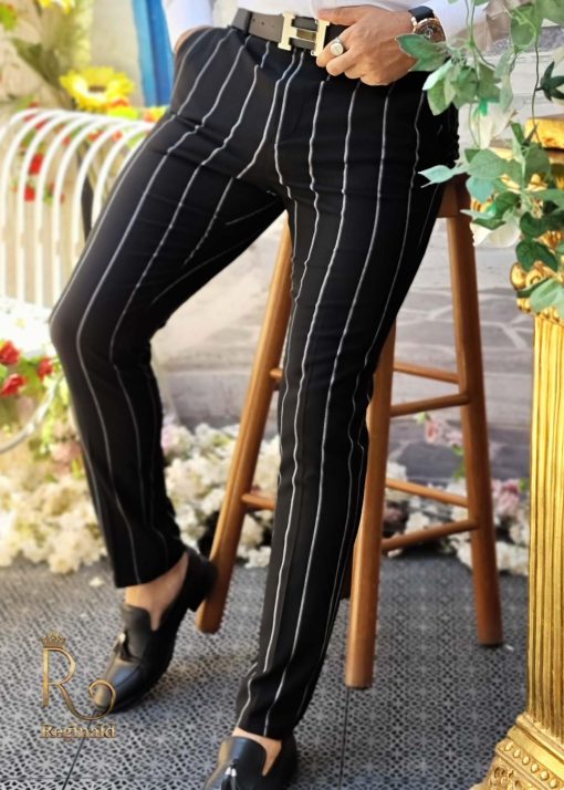 Pantaloni eleganti, de barbati, negru in dungi - PN439
