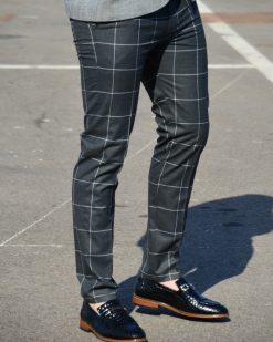 Pantaloni eleganti de barbati, Slim Fit, Bordeaux cu patratele, Conici