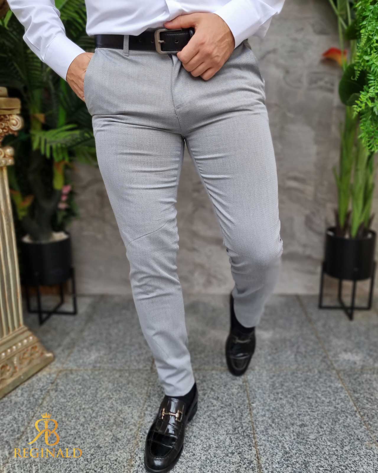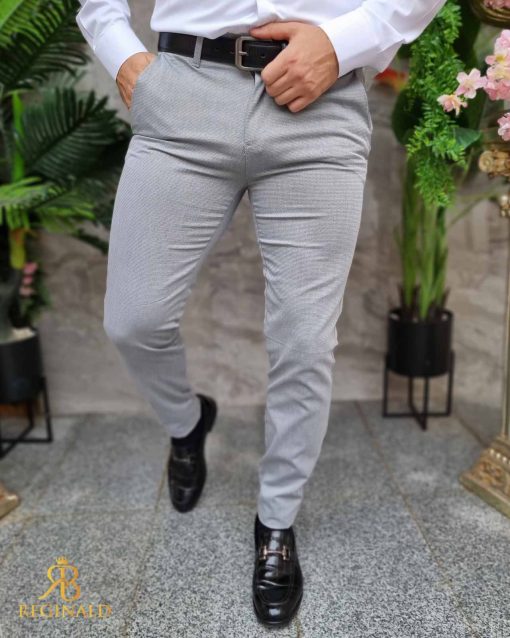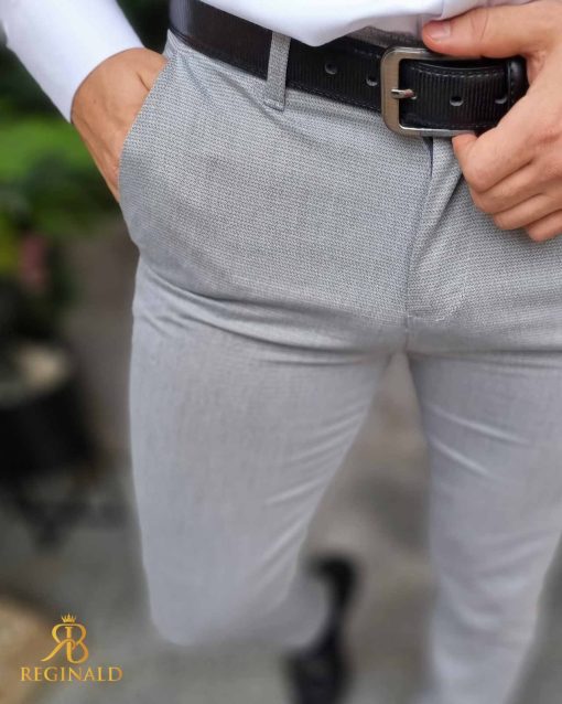 Pantaloni eleganti gri texturat, croiala conica- PN778