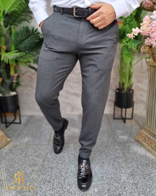 Pantaloni eleganti de barbati cu croiala slim-fit, prindere nasture si fermoar, 2 buzunare in fata, 2 buzunare in spate.