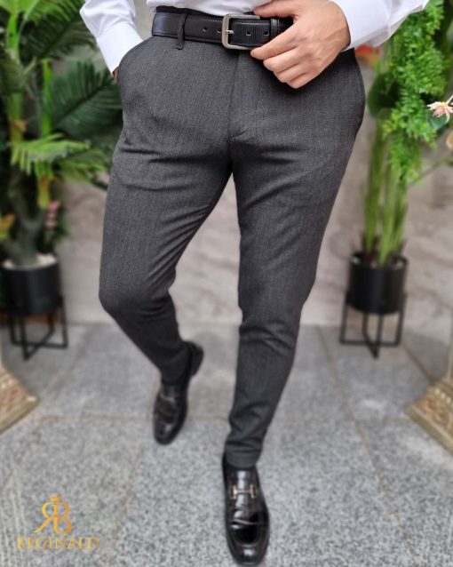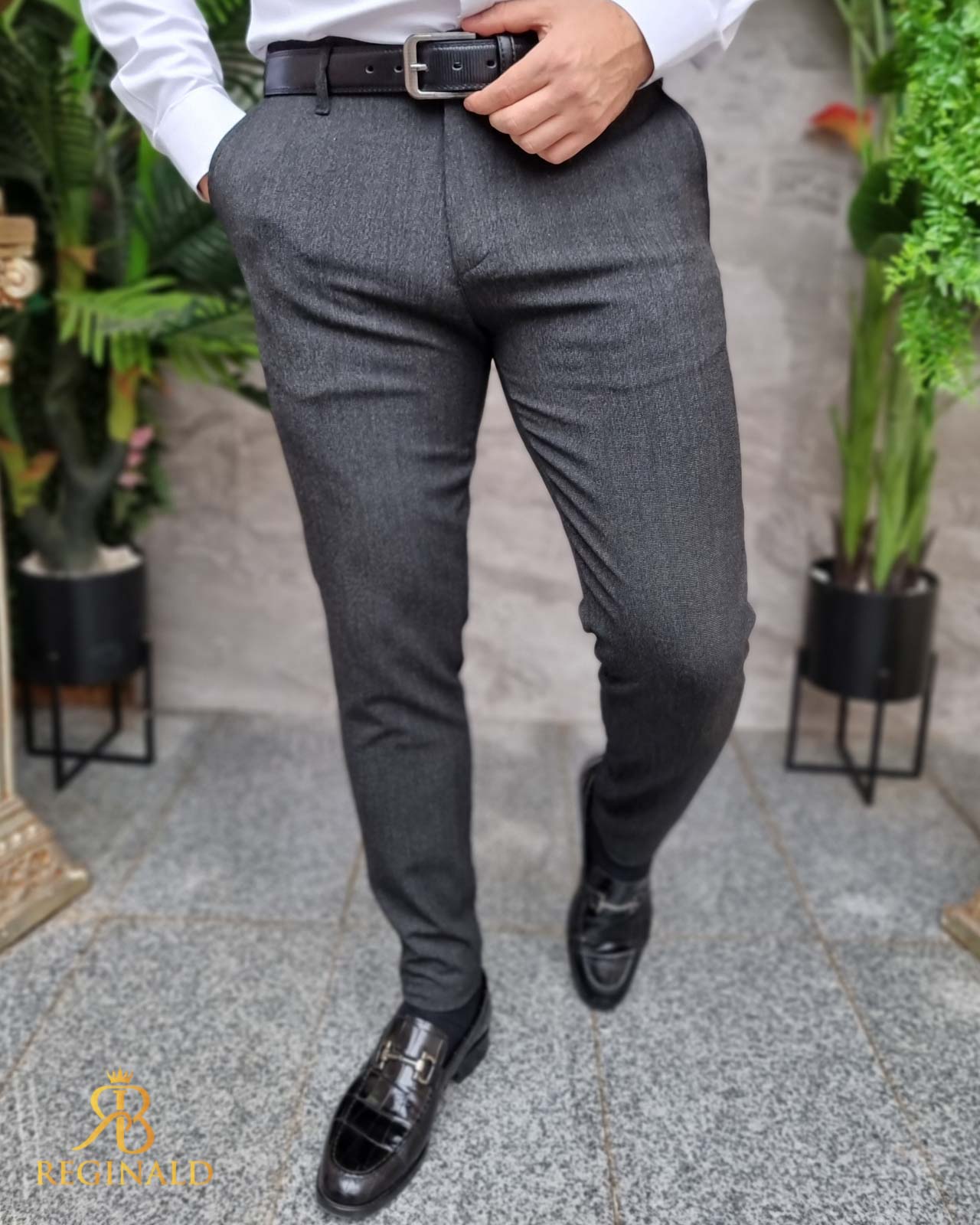 Pantaloni eleganti de barbati cu croiala slim-fit, prindere nasture si fermoar, 2 buzunare in fata, 2 buzunare in spate.