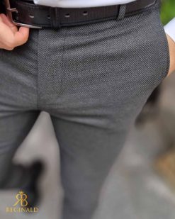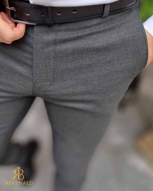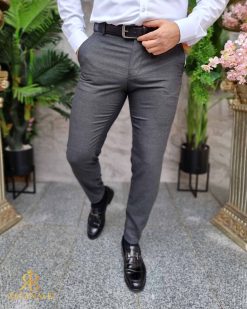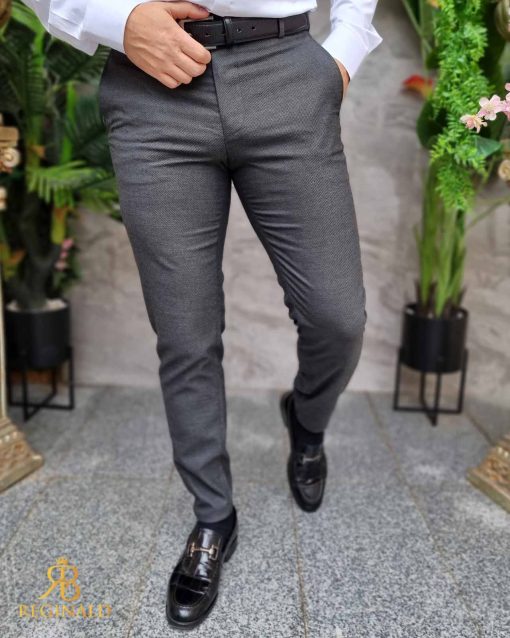 Pantaloni eleganti de barbati cu croiala slim-fit, prindere nasture si fermoar, 2 buzunare in fata, 2 buzunare in spate.