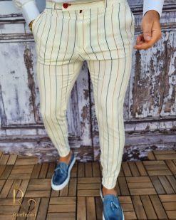 Pantaloni eleganti Slim-Fit, ivoire in dungi bleu/maro – PN500