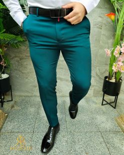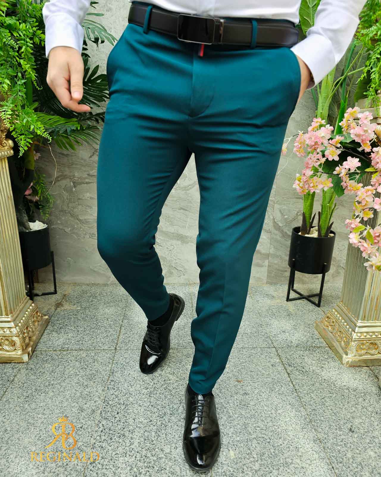 Pantaloni eleganti de barbati cu croiala slim-fit, prindere nasture si fermoar, 2 buzunare in fata, 2 buzunare in spate.