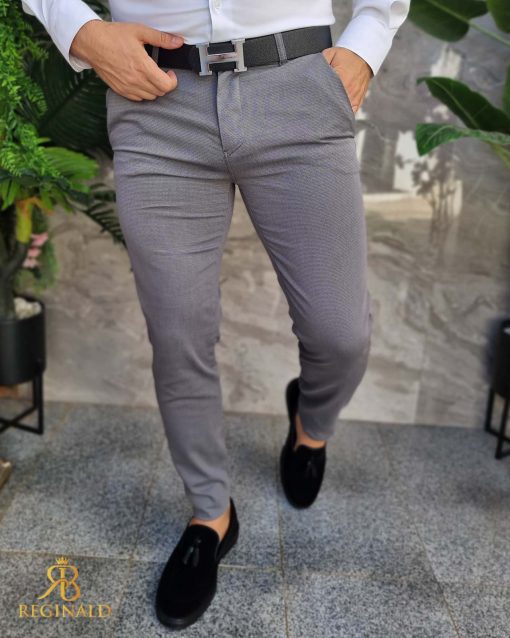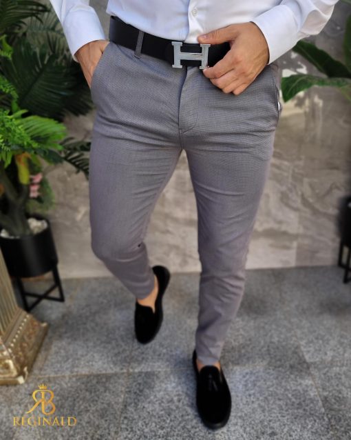 Pantaloni eleganti de barbati cu croiala slim-fit, prindere nasture si fermoar, 2 buzunare in fata, 2 buzunare in spate.