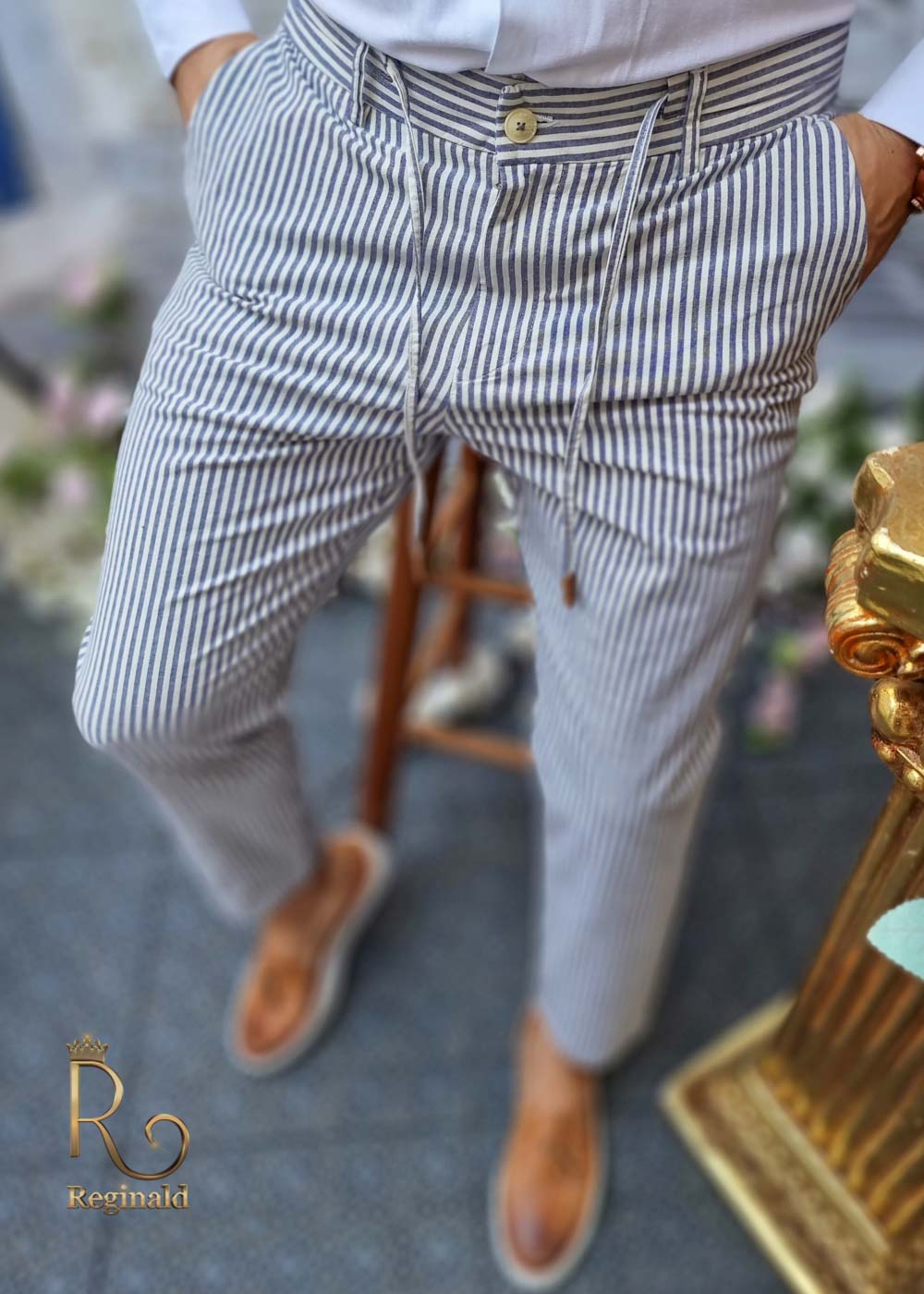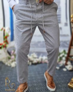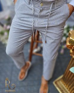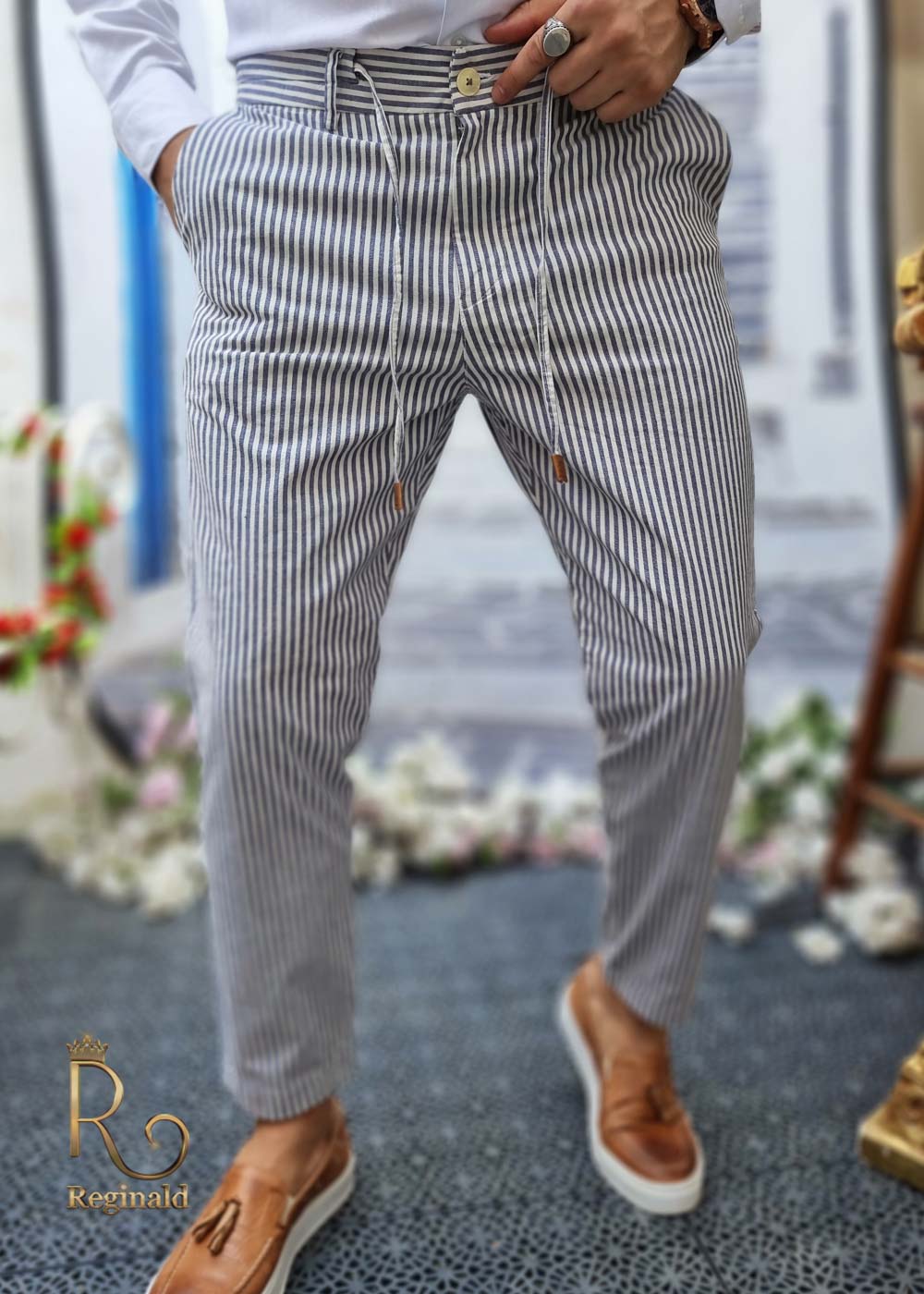 Pantaloni in dungi, de barbati, cu snur, tiv intors la glezne – PN511