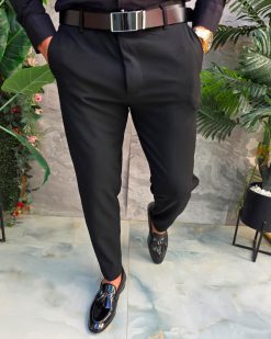 Pantaloni eleganti de barbati cu croiala slim-fit, prindere nasture si fermoar, 2 buzunare in fata, 2 buzunare in spate.