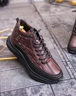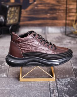 Pantofi bărbătești din piele naturală maro cu textură croco și talpă masivă. Model premium, sport–elegant, extrem de confortabil și modern.