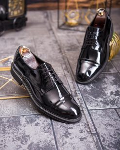 Pantofi bărbătești eleganți Cap Toe – Piele ecologică lacuită neagră