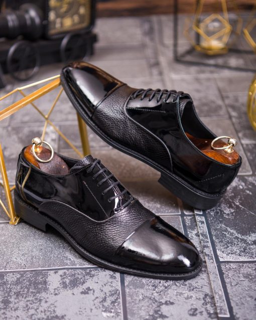 Pantofi bărbătești eleganți combinați – Piele naturală și lacuită