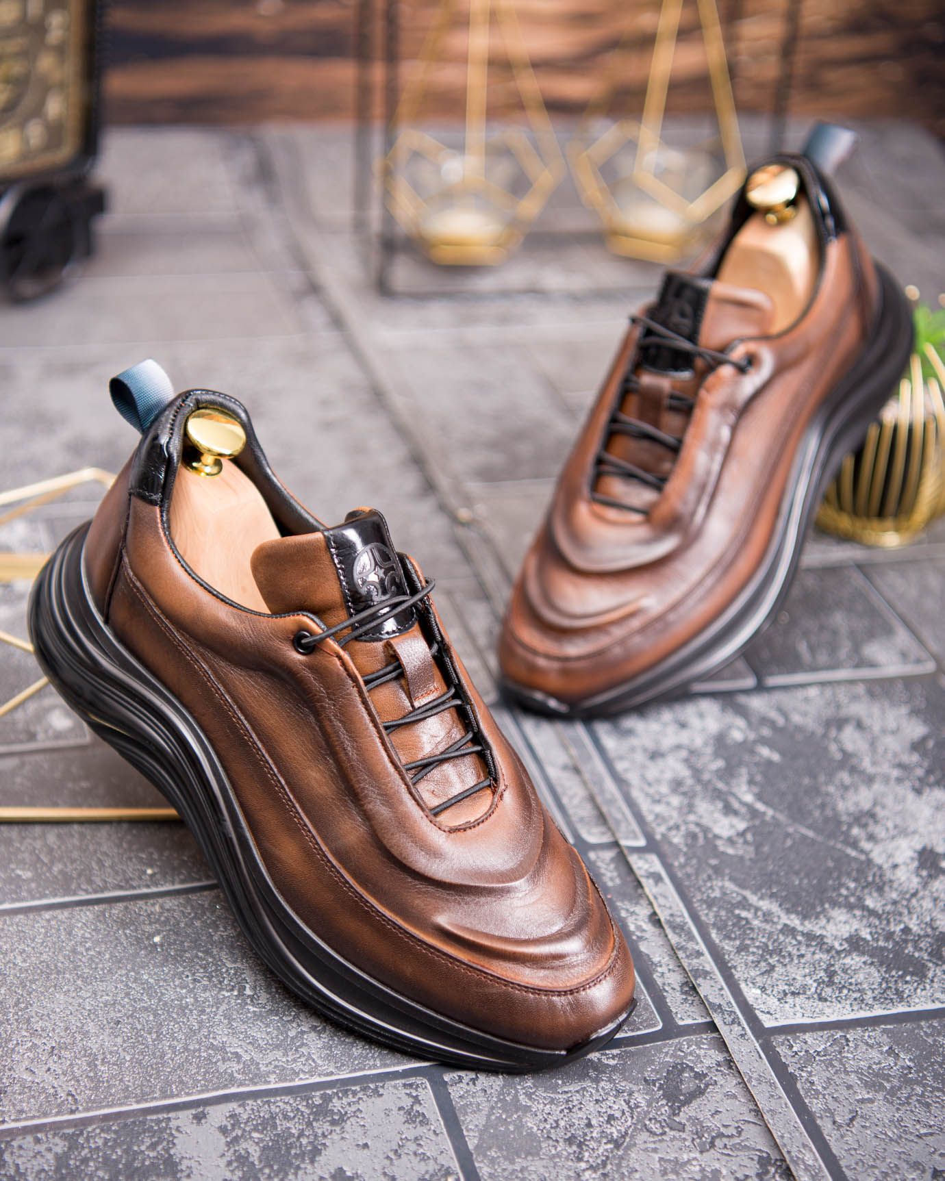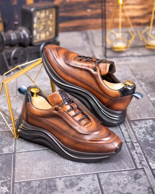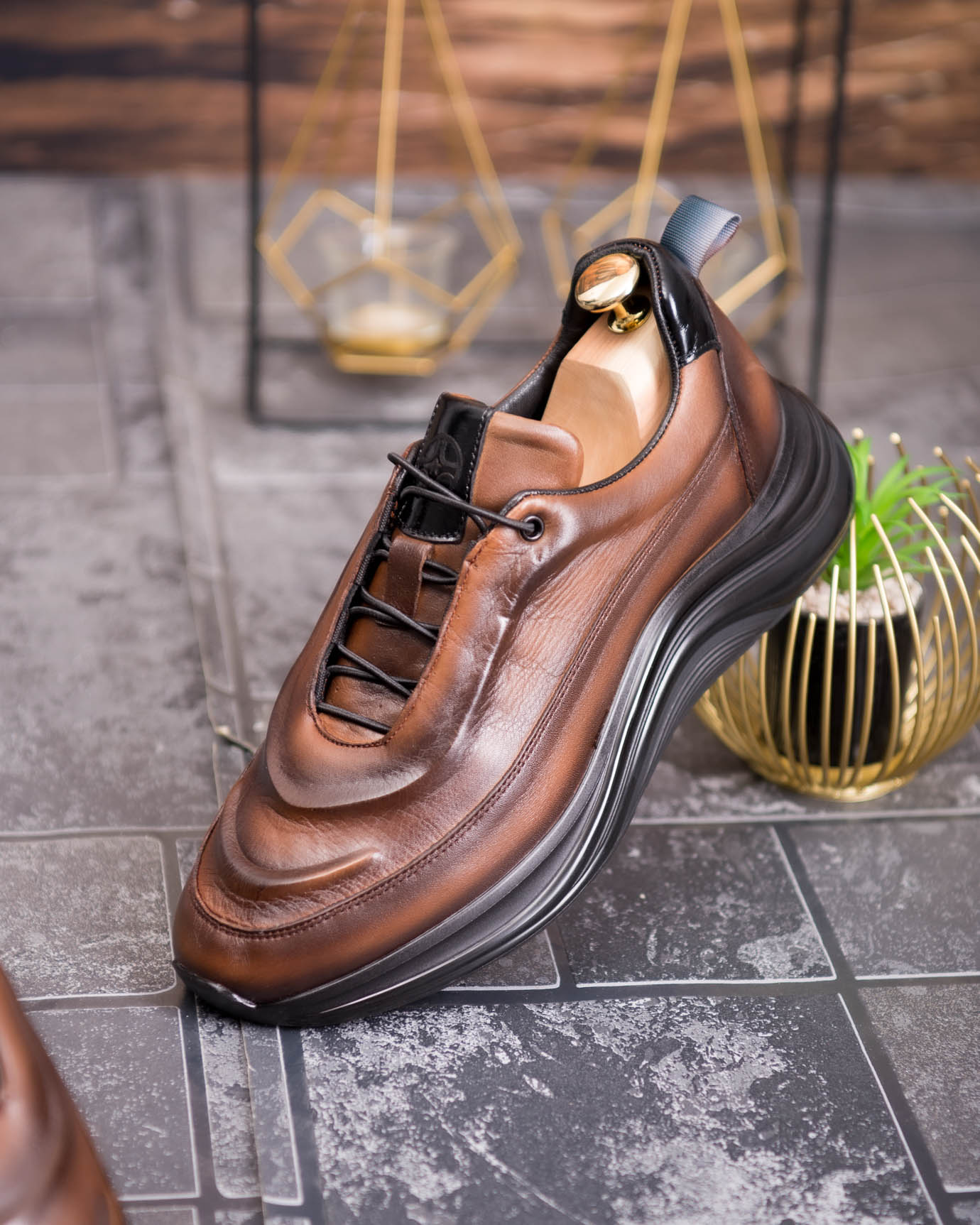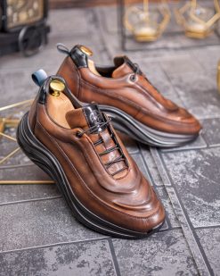 Acești pantofi sport bărbătești sunt confecționați din piele naturală premium, având un design deosebit care atrage atenția prin eleganța discretă. Culoarea maro îi face ușor de asortat la orice ținută, fie ea casual, smart-casual sau streetwear.