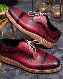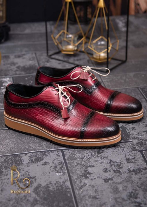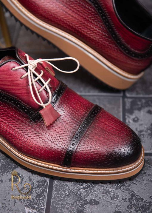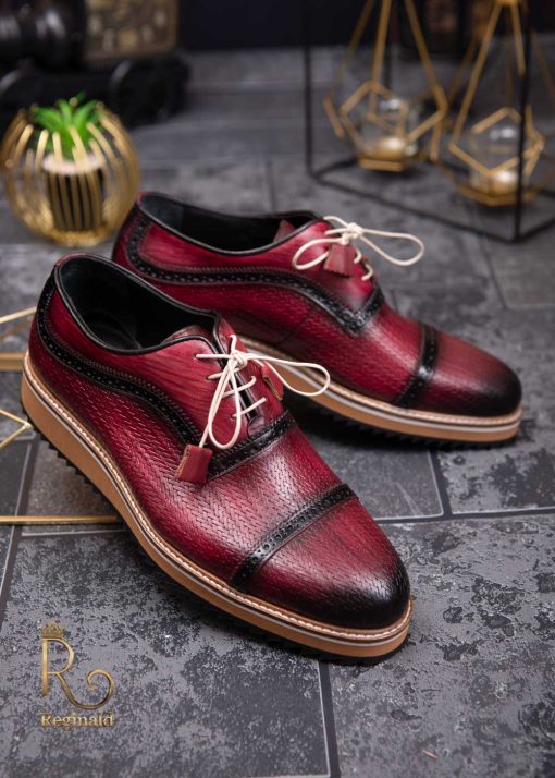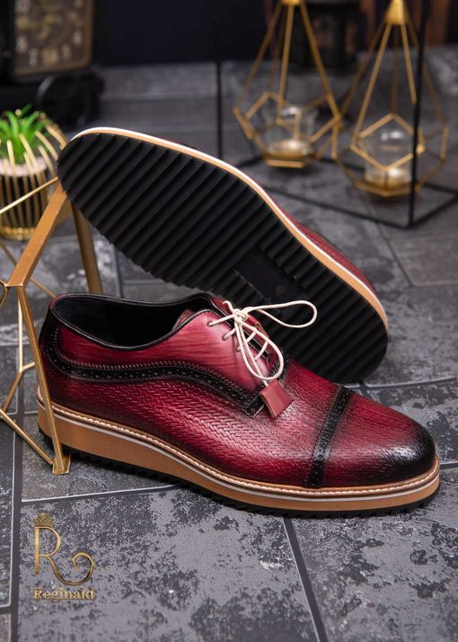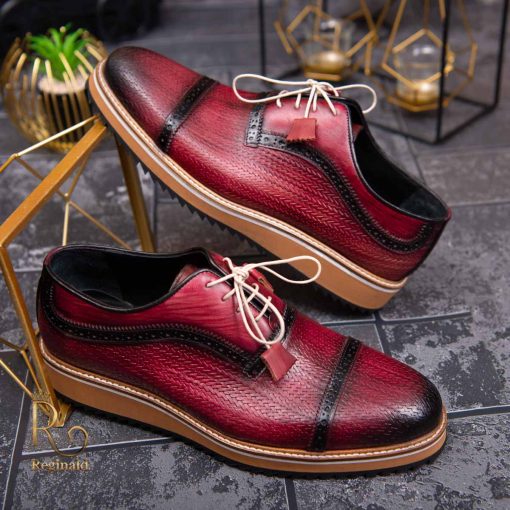 Pantofi Casual barbatesti din piele naturala, bordo cu talpa inalta, colectia Reginald. Pantofi realizat din piele de cea mai înaltă calitate perfecti pentru toate ocaziile formale.