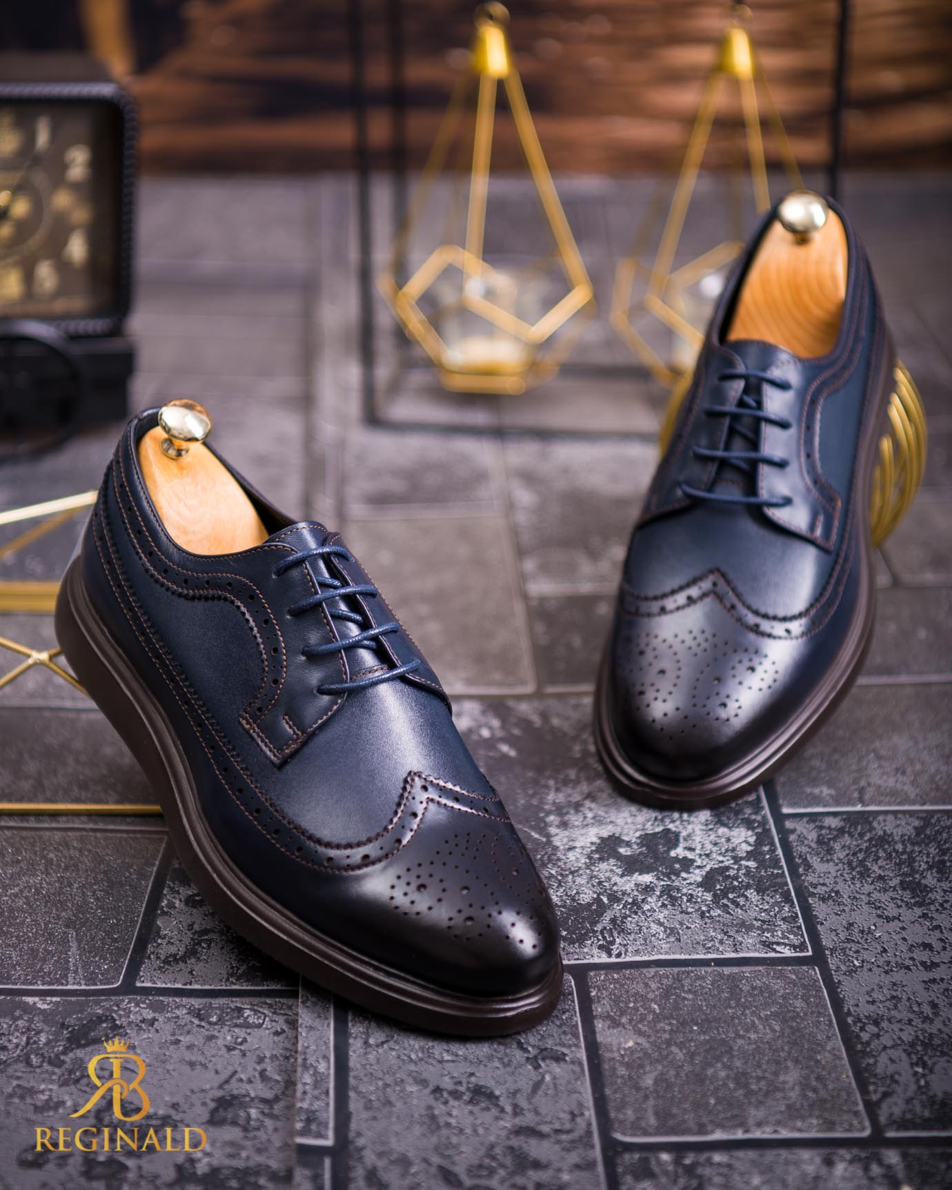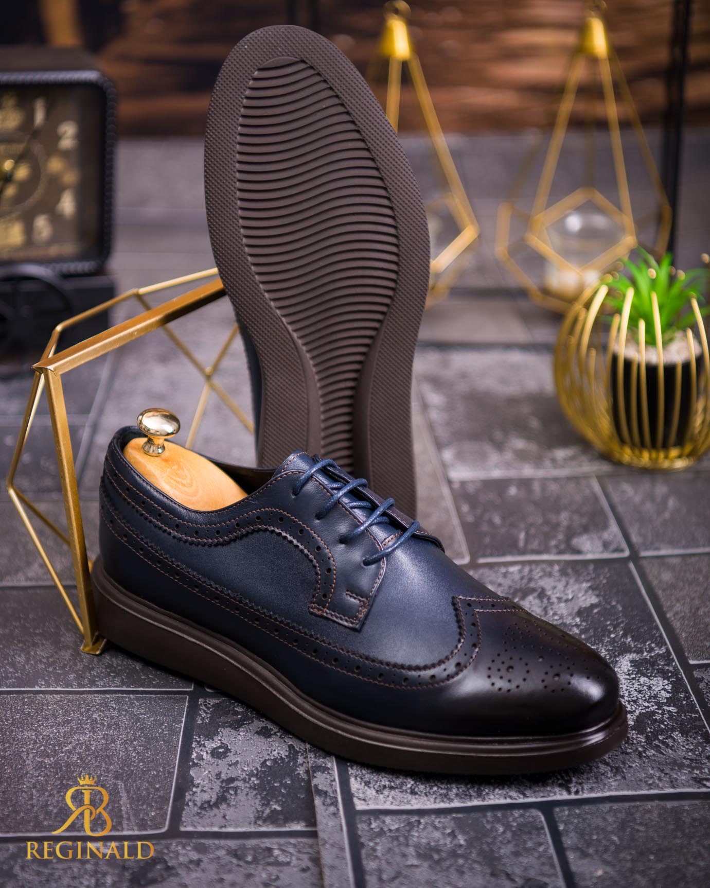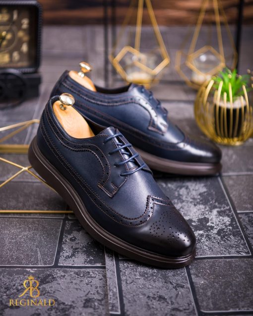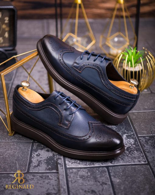 Pantofi Casual de bărbați din piele naturala, bleumarin cu talpa maro- P1844