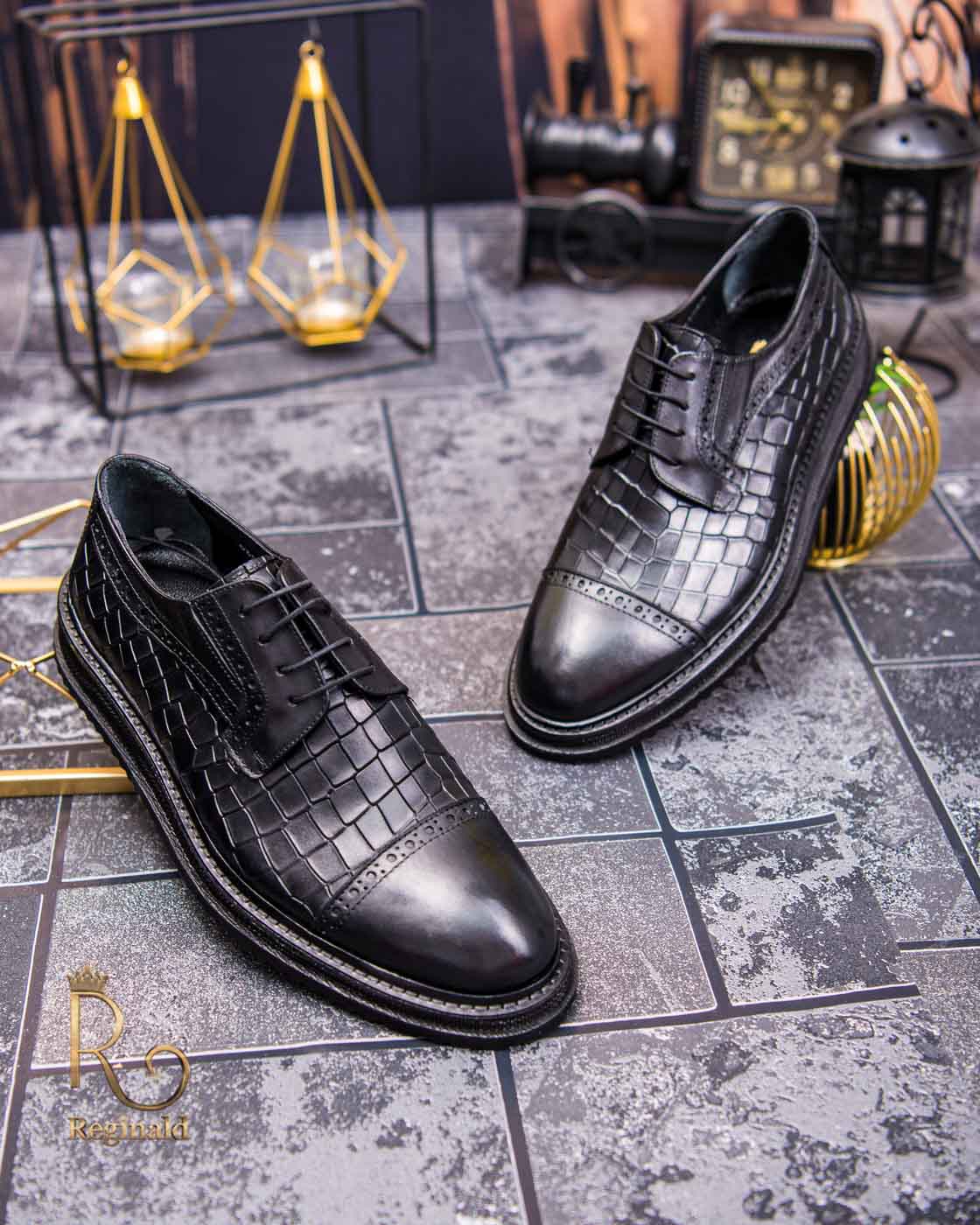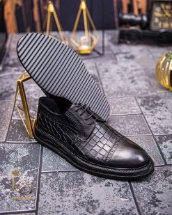 Pantofi Casual de bărbați, din piele naturala, Negru Snake cu talpa înaltă – P1514